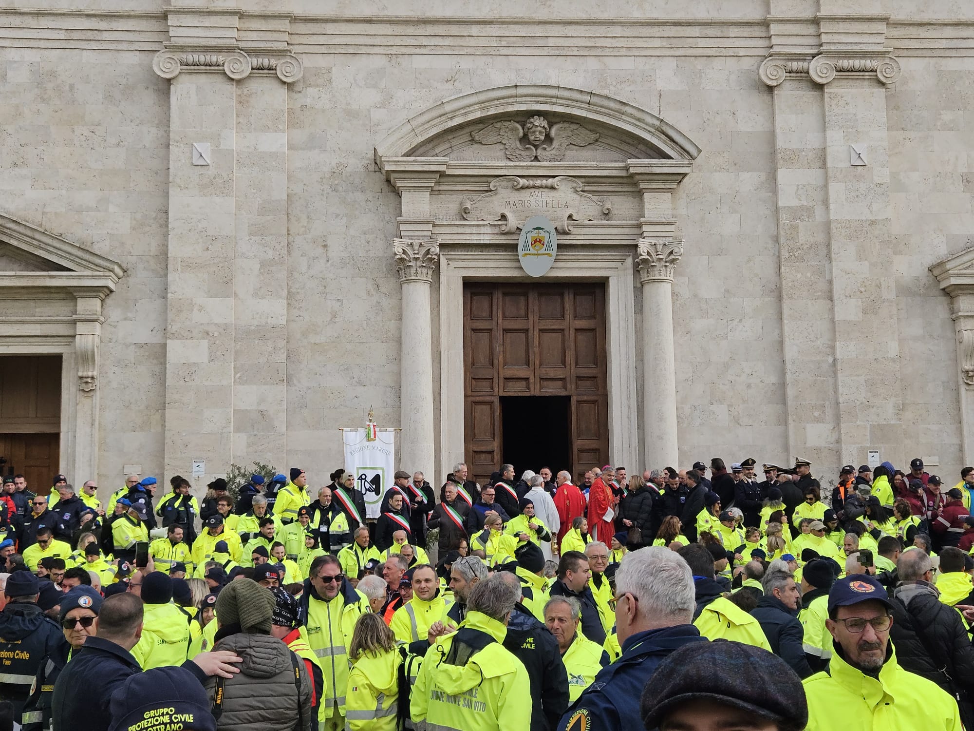«La vostra è una grande testimonianza – ha sottolineato nell’omelia -. Non tutti gli uomini partecipano a ciò che fate voi. A frenarci è spesso una gabbia, quella dell’individualismo, del nostro delirio. Non esistono più gli altri, ma solo noi stessi. Voi avete fatto una scelta: uscire da sé per rivolgere lo sguardo agli altri e alla realtà. Se c’è una necessità, io corro, insieme, perché viene prima dei “miei comodi”. È il Signore ad aver suscitato in voi la chiamata a entrare in questo servizio per il prossimo». Parole pronunciate in una chiesa di Santa Maria della Marina gremita di giallo fluo e rosso, tra le uniformi dell’Associazione Carabinieri e dei molti sindaci marchigiani intervenuti con i loro tricolori. Una festa di colori e partecipazione.