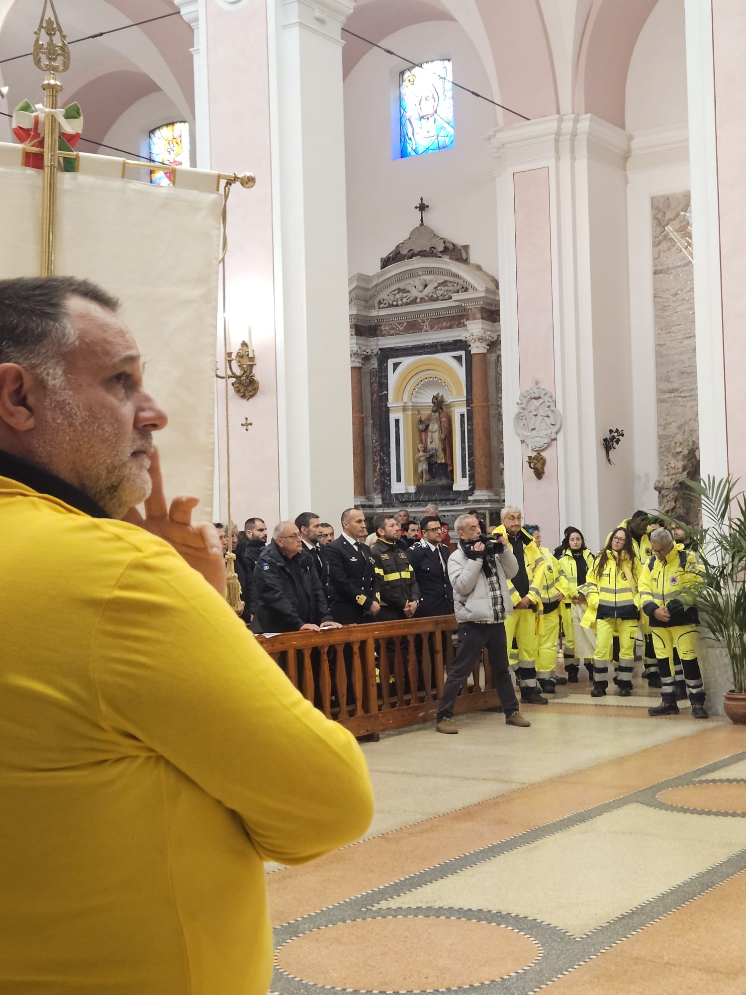 «Nel vivere la nostra vita di volontariato – ha aggiunto il Vescovo – si rischia di far prevalere il nostro io o il nostro gruppo. La tentazione è sempre quella di tornare a se stessi, ma proprio per questo dobbiamo vigilare. I sadducei, intellettuali dell’epoca di Gesù, come ricorda il Vangelo appena ascoltato, negavano la vita oltre la vita. E Gesù esce dal caso assurdo della vedova dei sette fratelli affermando che Dio non è Dio dei morti ma dei vivi, e che in Cielo non valgono le regole umane. La sostanza della fede è questa: tornare alla motivazione originaria, al bene comune, alla difesa degli altri, facendo rete nell’aiuto ai fragili, proteggendo, custodendo, sostenendo. Che festa, oggi, davvero. Ricordiamo la martire Cecilia e il vostro patrono, San Pio da Pietrelcina, protettore della Protezione Civile. I loro insegnamenti – la fedeltà fino in fondo, anche fino alla vita per Santa Cecilia – ci esortano a proseguire nell’aiuto al prossimo, senza cedere ai personalismi, restando fedeli ai più fragili, da “proteggere”. Grazie per il vostro prezioso servizio e per il cammino che condividiamo. Siamo nella Chiesa di Maria Stella del Mare: lei ci incoraggia ad affrontare le avversità, a non temere, a vedere sempre il Bene come meta, come stella da raggiungere. Maria ci accompagni sempre nel nostro cammino di aiuto al prossimo».