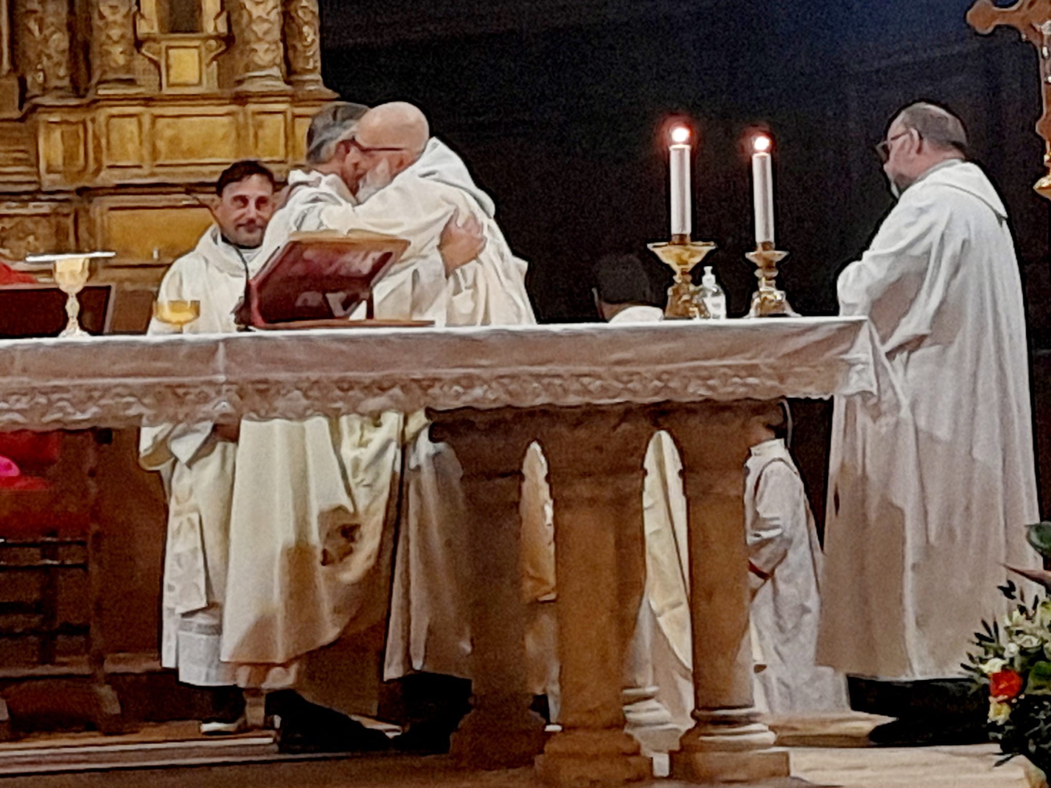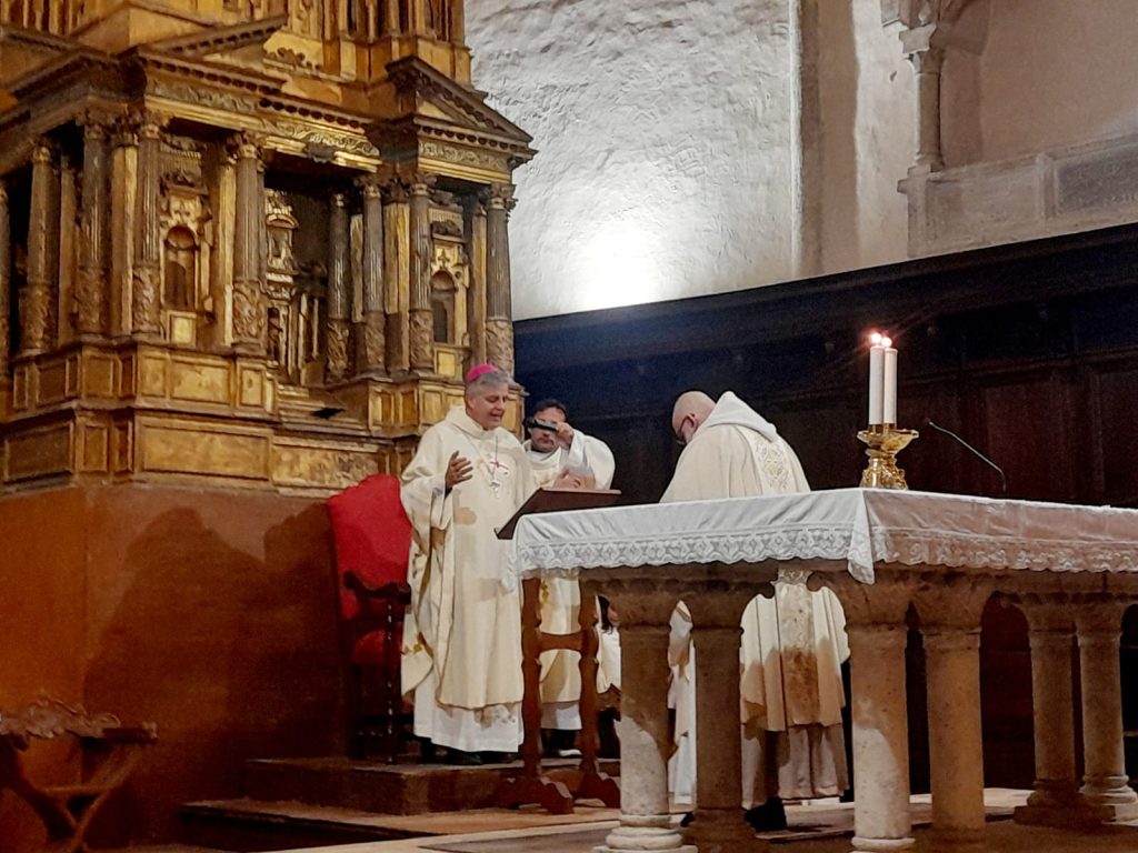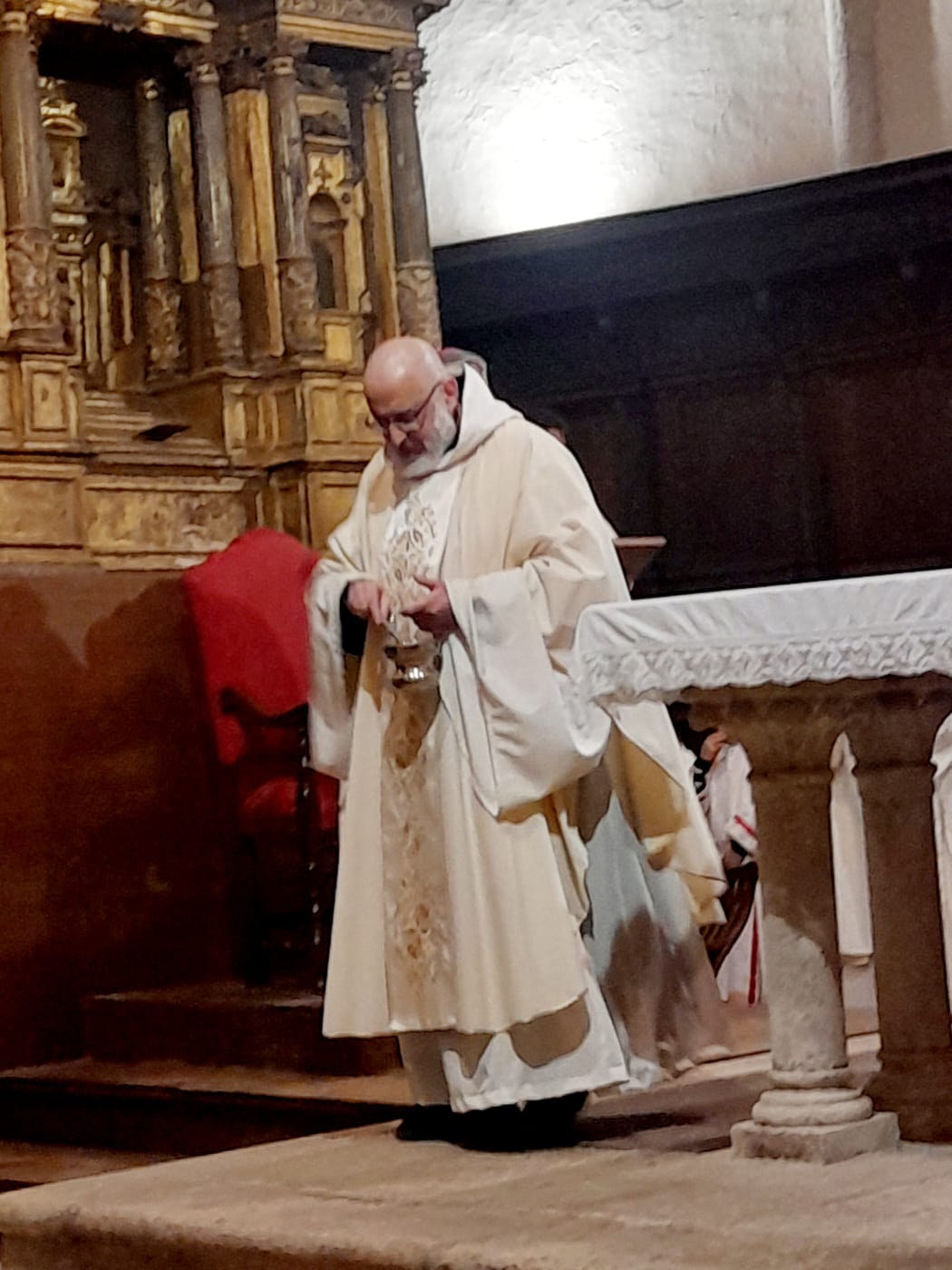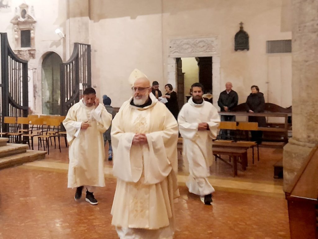 Anche don Francesco aveva sentito un altro carisma. Ha servito per due volte la Chiesa a Gaeta, è stato parroco per due volte. Poi ha sentito che nella sua vita il Signore lo chiamava ad un’altra cosa, a fare il monaco. Quella del monaco è una vocazione diversa, perché vive in modo particolare il silenzio, la preghiera e la contemplazione. Ha sentito la vocazione a vivere la regola di un monaco santo ed evangelizzatore, San Bonifacio. A chi vive questa regola viene chiesto di fare i monaci senza diventare parroci. Io, invece, ho chiesto a don Francesco di fare il parroco, perché ce n’era bisogno nella vostra comunità. E lui ha accettato e di questo lo ringrazio. Conservando la sua vocazione e il suo carisma monastico, dedito alla preghiera e alla contemplazione, visto che avete qui vicino il monastero di Sant’Onofrio, il Signore, attraverso me, gli sta chiedendo di diventare pastore e guida di questa comunità. Una comunità cristiana vive di ascolto della Parola di Dio e di Eucaristia, quindi vive anche nella preghiera – e i monaci ce lo ricordano -, ma a servizio del regno di Dio.