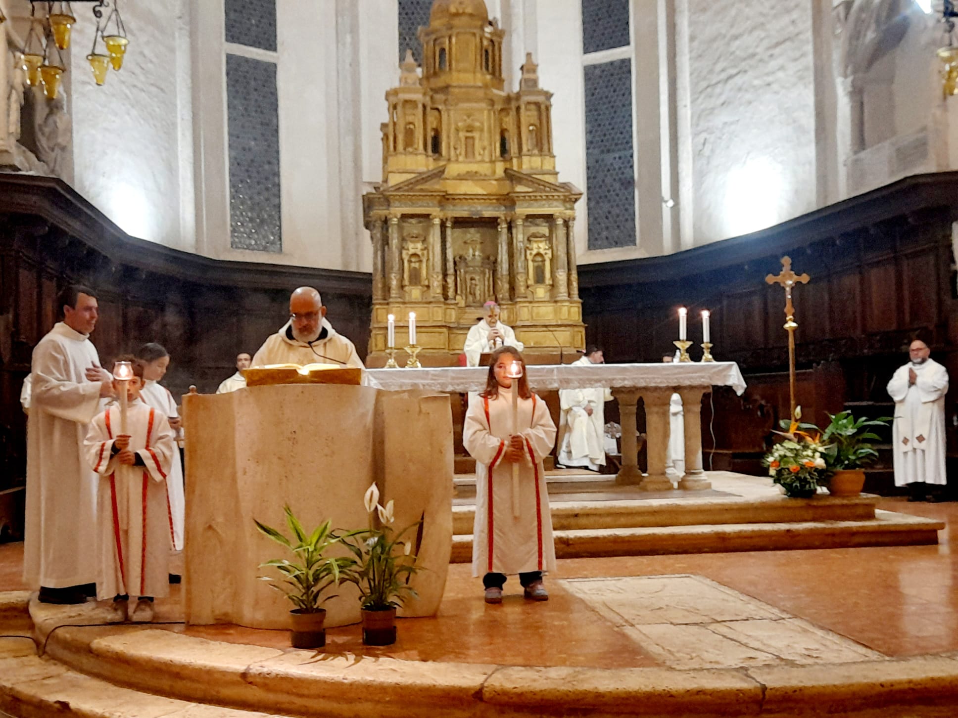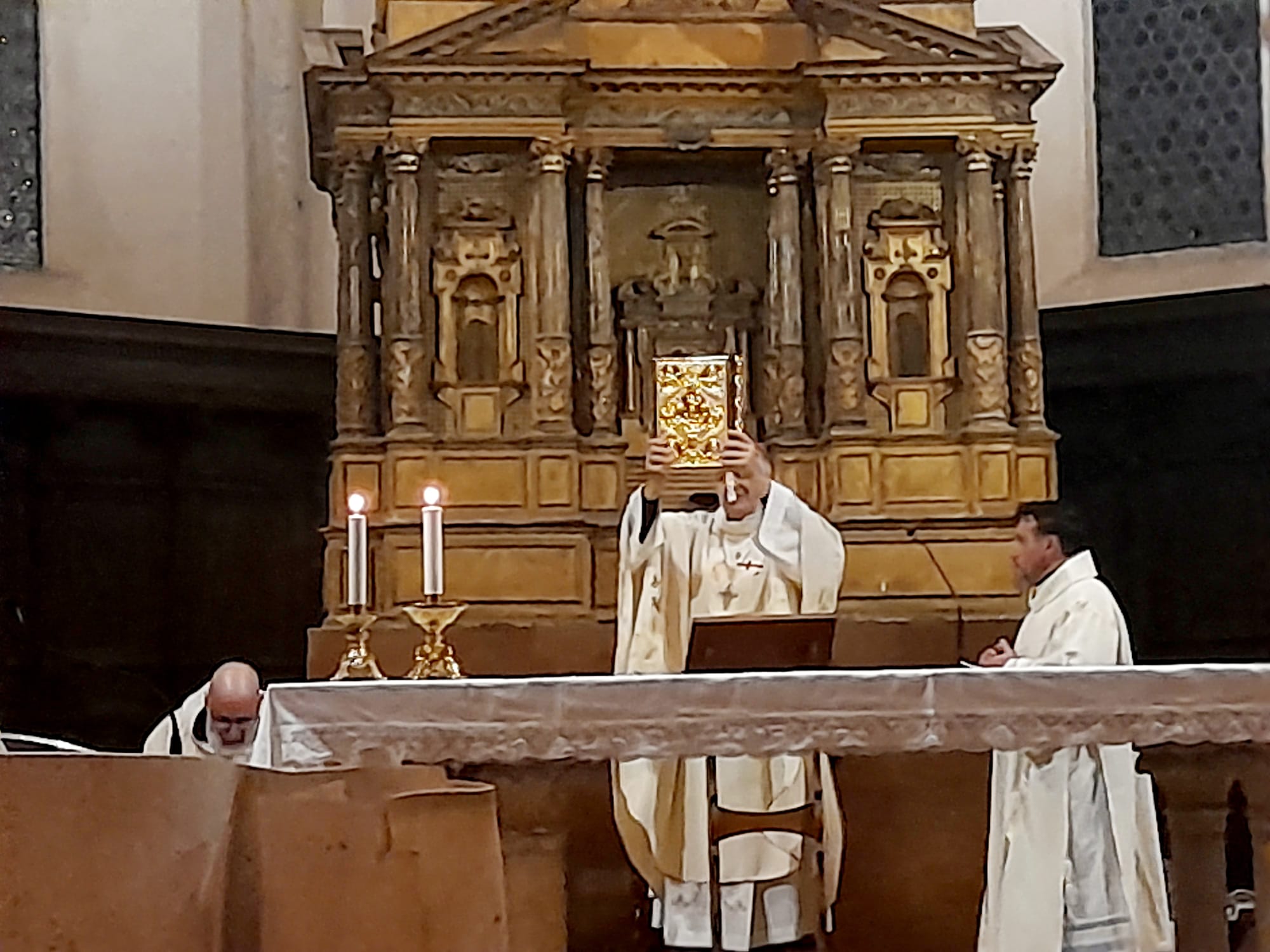 E la comunità cristiana, allora, esiste per realizzare il regno di Dio. Ognuno di voi è chiamato a realizzarlo nei luoghi di vita, nei posti di lavoro, poi ci vediamo la Domenica per ascoltare insieme la Parola di Dio e vivere l’Eucarestia. Ma ogni giorno ognuno realizza un pezzettino del regno di Dio: c’è chi lo fa attraverso la sua professione, chi attraverso le sue relazioni, chi prova a dare speranza a chi è sfiduciato, chi prova a dare fiducia a chi non ne ha. Ognuno come può. Ecco perché ci siamo! Ecco perché la Chiesa esiste! Anche la comunità di San Pietro martire, al centro di questa città, esiste! Tanta gente passa qui e vede la straordinaria bellezza delle opere d’arte e qui davvero può, attraverso la comunità cristiana della cattedrale, di San Francesco, di San Pietro martire e tutte le altre, scoprire la bellezza di Dio e del suo regno. Forse è questa la vocazione di queste comunità!