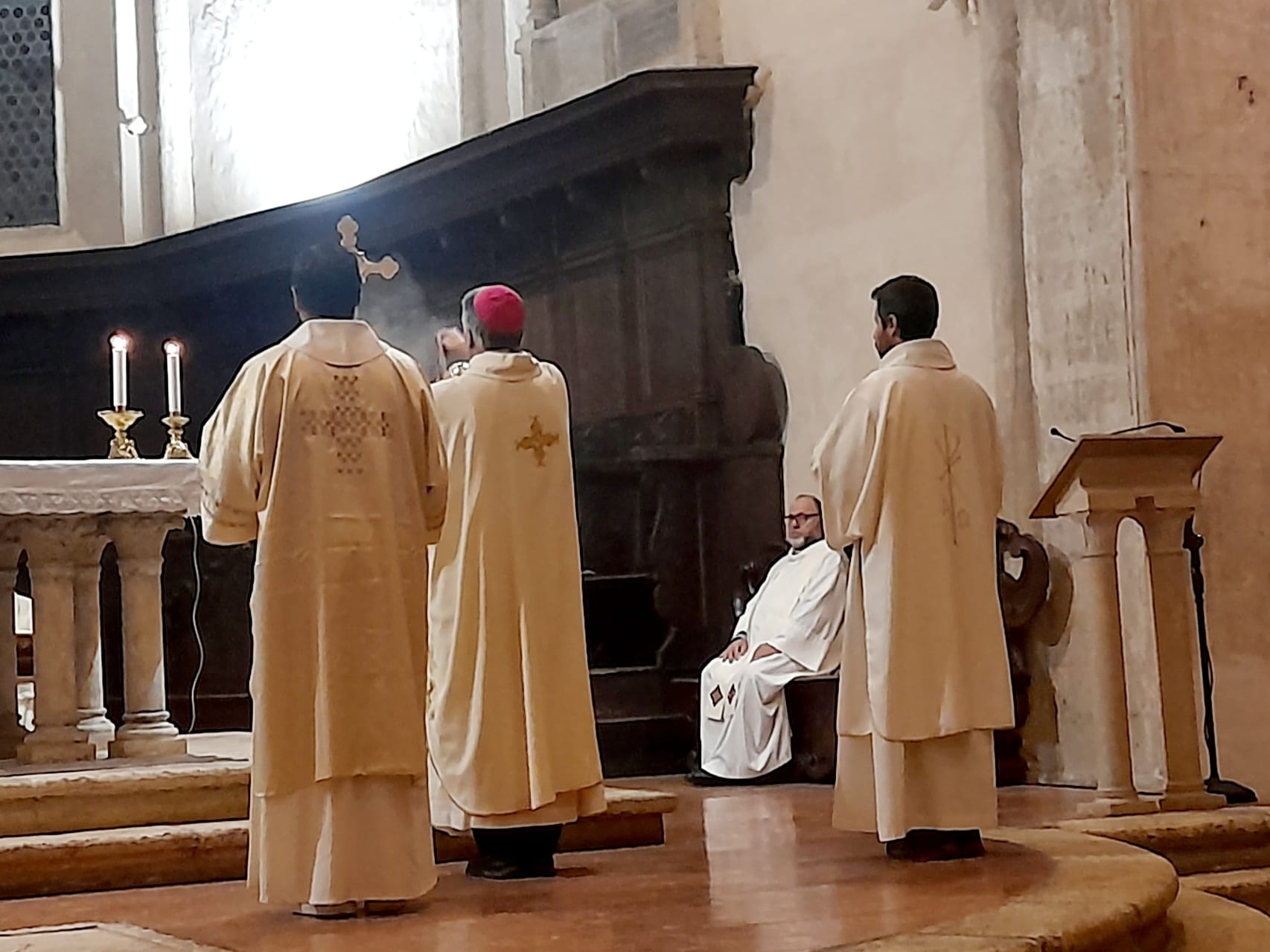 DIOCESI – “Da solo riesco a fare poche cose. Ho bisogno dell’aiuto di tutti. Vedo con piacere che ci sono dei giovanissimi e di loro ho molto bisogno. Ma ho bisogno anche degli ammalati che sono a casa. Ho bisogno di tutti per essere – come ci ha detto il vescovo Gianpiero durante l’omelia – questa presenza del regno di Dio nella storia di oggi. Una storia che è segnata sì dalla guerra, dall’individualismo, da tante persone che vogliono sopraffare l’altro, ma anche da quelli che invece vogliono incontrare l’altro, avvolgerlo in un abbraccio e mettersi a servizio della comunità. Quelli che si impegnano per essere un riflesso di Gesù su ogni angolo della terra. Insieme, come comunità, siamo chiamati a farci vicino a tutte le le persone, soprattutto quelle che sono più lontane da Dio, ma che desiderano contemplare il volto di Gesù e Lo attendono. Io cercherò di essere sempre questa presenza. E so che anche voi lo sarete. Insieme sapremo essere presenza del Re Risorto in mezzo a noi. Per questo ho bisogno di tutti. Ringrazio voi, per essermi accanto, il vescovo, per avermi riservato questa immensa fiducia, e il Signore, che ci rende riflesso della sua regalità per la storia di oggi”.