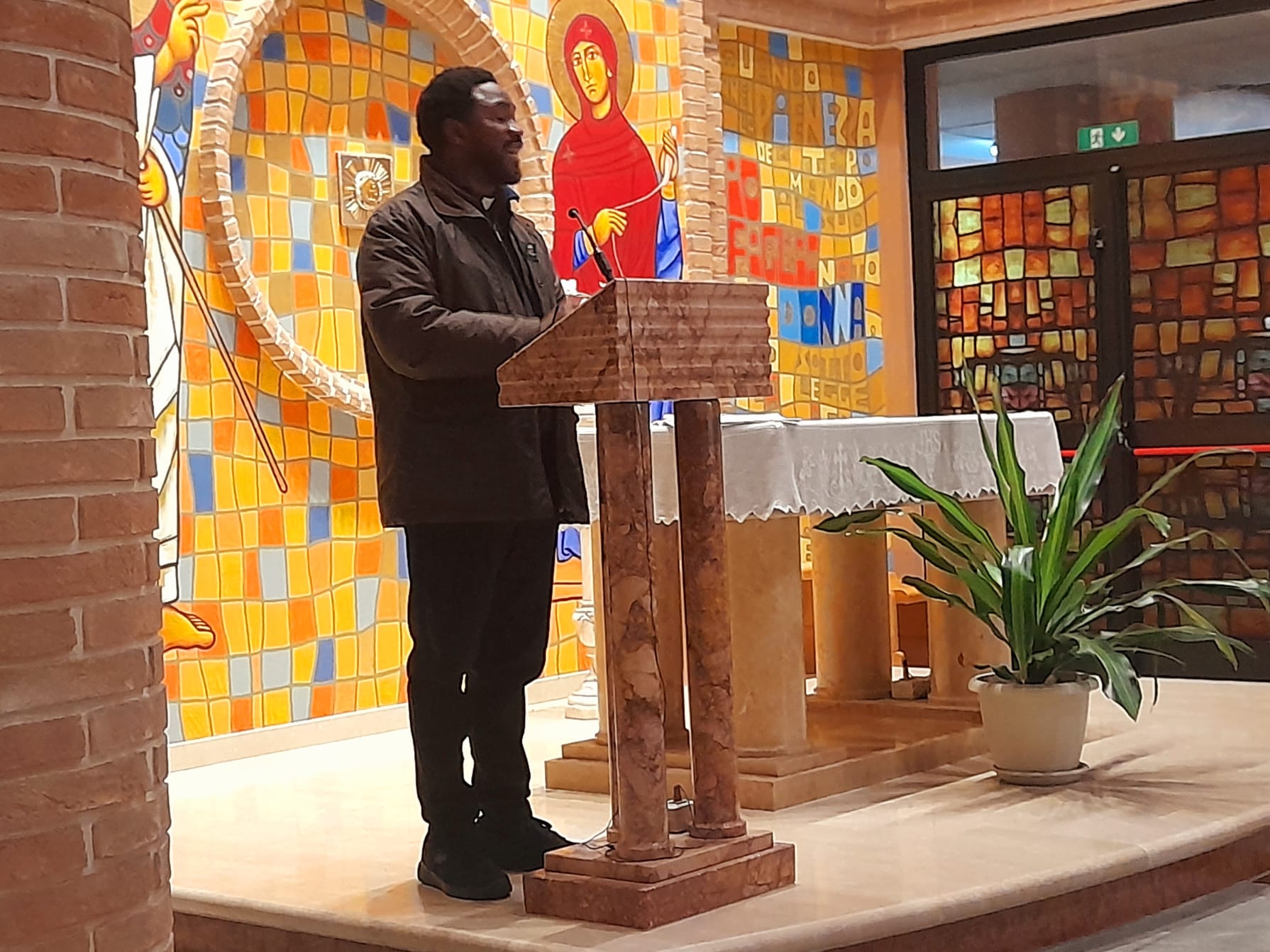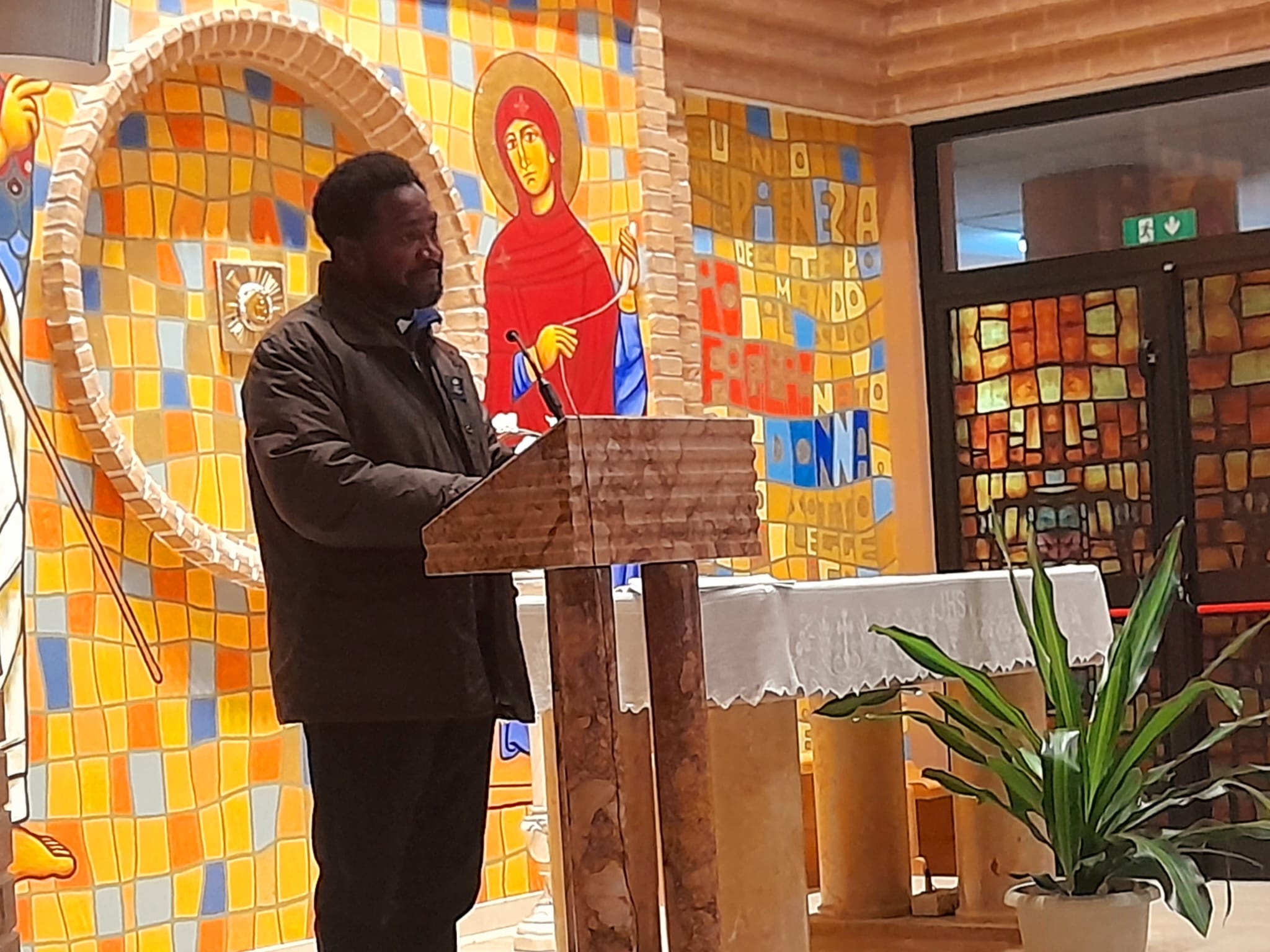 A salutare i convenuti è stato il vicario foraneo, don Anselmo Fulgenzi. Dopo un canto comunitario di invocazione allo Spirito Santo, don Don Juvénal Lukumbusho Mukamba ha letto e poi meditato la celebre Prima Lettera di San Paolo apostolo ai Corinzi (1Cor 1, 26-31): “Paolo scrisse questa lettera al termine del suo soggiorno a Efeso, dopo un lungo viaggio missionario attraverso la Grecia e il Mar Egeo. L’apostolo Paolo aveva fondato la Chiesa di Corinto, che era composta da Ebrei e Greci, il che la rendeva particolarmente vulnerabile alle influenze pagane circostanti. Pochi anni dopo la sua partenza, apprese notizie preoccupanti al suo riguardo: la Chiesa di Corinto soffriva di problemi di divisione, conflitto e scandalo, tra cui un caso di incesto, oltre a questioni teologiche e morali; i doni spirituali venivano usati indiscriminatamente e regnava una generale confusione sulle principali dottrine cristiane. Paolo scrisse quindi la sua prima lettera ai Corinzi per ricostruire la Chiesa di Corinto sul giusto fondamento: Gesù Cristo. Nel primo capitolo della lettera, Paolo mette in guardia contro le divisioni all’interno della Chiesa e sottolinea l’importanza dell’unità tra i suoi membri. Sottolinea che la Chiesa è una comunità incentrata su Gesù e che le rivalità devono essere respinte. Evidenzia inoltre l’importanza della croce come messaggio di salvezza e denuncia la ricerca della sapienza mondana. Paolo contrappone la ‘sapienza di questo mondo’, spesso ritenuta insufficiente, alla ‘sapienza di Dio’, che consiste nel proclamare la croce di Cristo – un messaggio che può sembrare follia al mondo, ma che è la potenza stessa di Dio per la salvezza. Paolo ci ricorda che i leader della Chiesa, a cui possiamo credere di appartenere, sono servitori di Cristo e che l’unico centro della Chiesa è Gesù Cristo. Esorta quindi i Corinzi a non vantarsi degli uomini, ma a ricordare che tutti sono battezzati in Cristo. Per Paolo, l’efficacia della salvezza non risiede nei discorsi eloquenti, ma nella proclamazione della croce, che è il fondamento della fede cristiana. Il testo invita all’umiltà, poiché Paolo spiega che Dio ha scelto ciò che è debole e stolto agli occhi del mondo, per confondere i forti e i sapienti, affinché nessuno possa vantarsi di fronte a lui”.