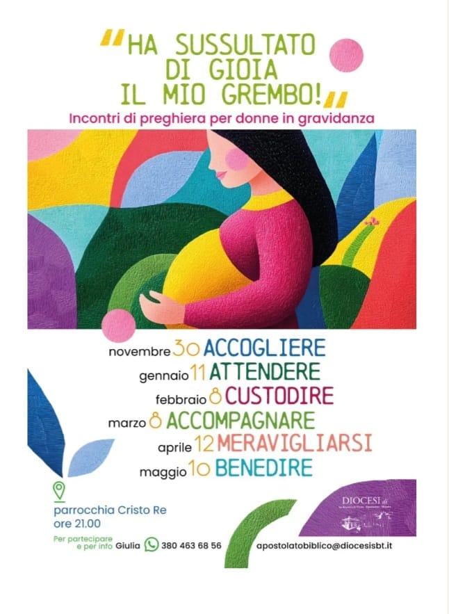 DIOCESI – Prepararsi all’arrivo di un bambino è un momento emozionante, ma anche pieno di domande. La preghiera è quindi uno strumento efficace per vivere l’attesa con pazienza, serenità e gioia. È per questo motivo che la Diocesi di San Benedetto del Tronto – Ripatransone – Montalto propone l’iniziativa “Ha sussultato di gioia il mio grembo!“, un ciclo di sei incontri di preghiera rivolti alle donne in gravidanza, per offrire loro un sostegno spirituale, comunitario ed emotivo durante il periodo dell’attesa.