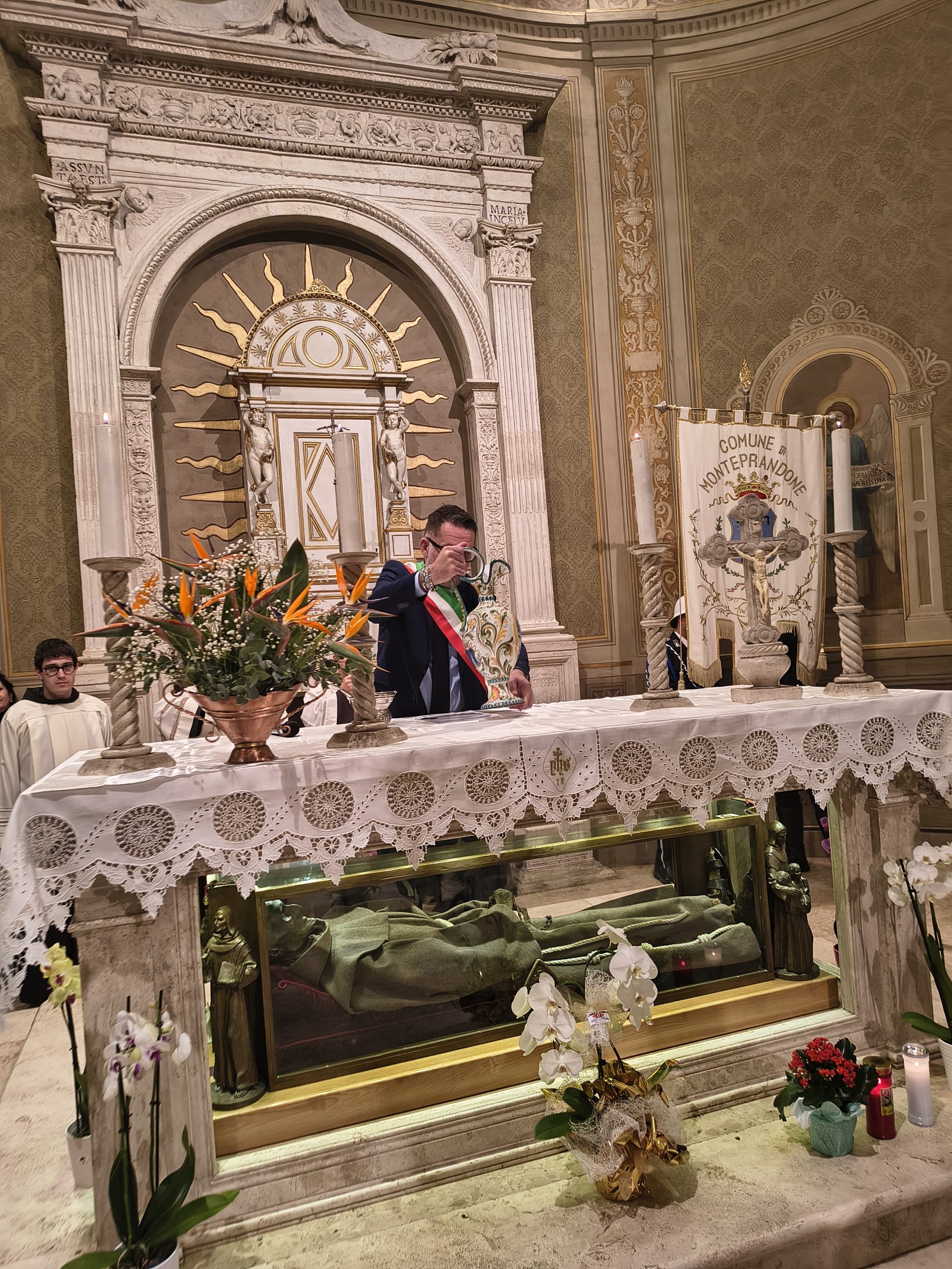 Al termine della Messa solenne, dopo i ringraziamenti, il sindaco di Monteprandone ha rinnovato il rito dell’offerta dell’olio benedetto, affidando la città alla protezione del santo. I sindaci dei comuni legati a San Giacomo hanno quindi recitato un’invocazione comune: