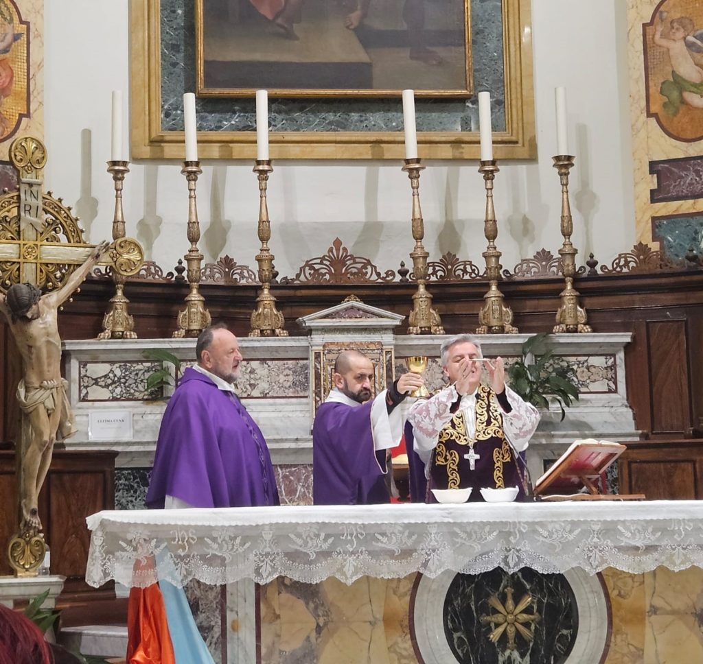 La Celebrazione. Con il Vescovo concelebrava Padre Eugenio Perico, Missionario Mariano Monfortano, con il diacono Emanuele Imbrescia. Al termine della Celebrazione, Don Guido ha ringraziato il Vescovo e i presenti e ha donato un’immaginetta della Madonna Immacolata della Chiesa di San Benedetto Martire, con una preghiera scritta di pugno dal Vescovo Palmieri, e anche un piccolo libro con il Calendario liturgico 2026, così da restare sempre aggiornati sulla Liturgia annuale.