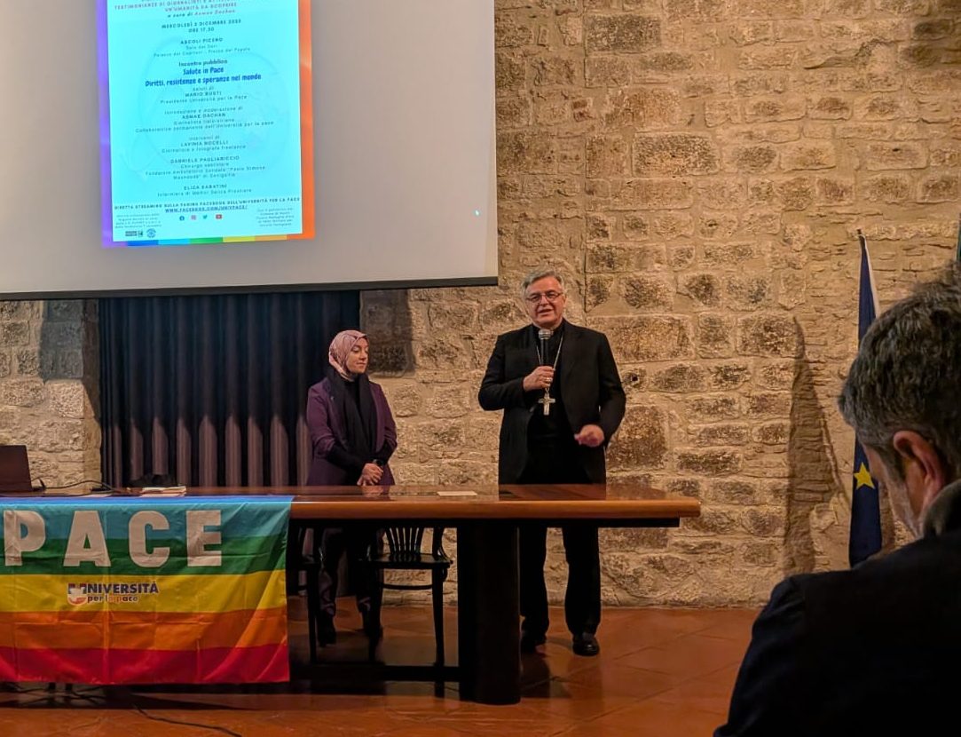 Ad aprire l’incontro è il vescovo Gianpiero Palmieri che, dopo aver ringraziato per l’opportunità di poter aprire l’evento fa un appello all’importanza della pace che, di questi tempi, non solo non è scontata ma dev’essere un dovere, da parte della società, di promuoverla. Proprio per questo mons. Palmieri annuncia che, per volere di Papa Leone, il primo gennaio sarà celebrata la giornata della Pace e di aver deciso di celebrarla in modo diverso: una tavola rotonda con testimonianze e con la possibilità di portare anche gesti simbolici proprio perché questo incontro sia accessibile a tutti.