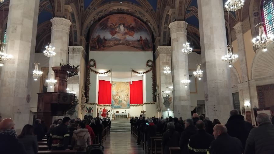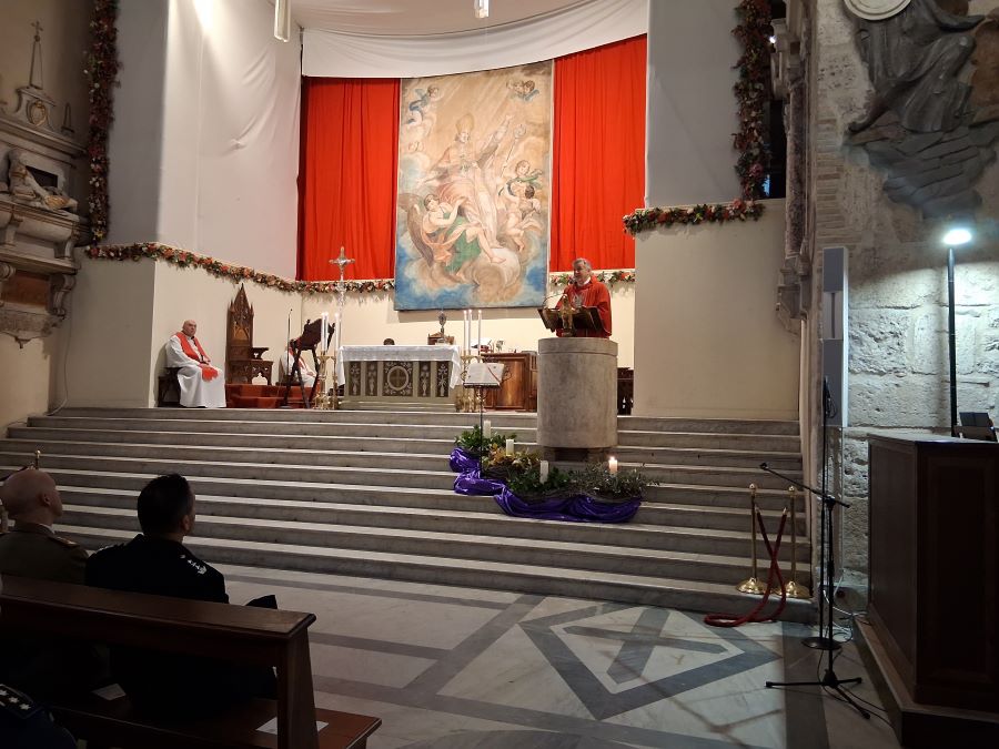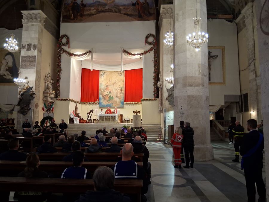 Nell’omelia, Mons. Palmieri ha espresso la gioia di vedere riuniti Vigili del fuoco e Marina Militare per la ricorrenza della loro Patrona: