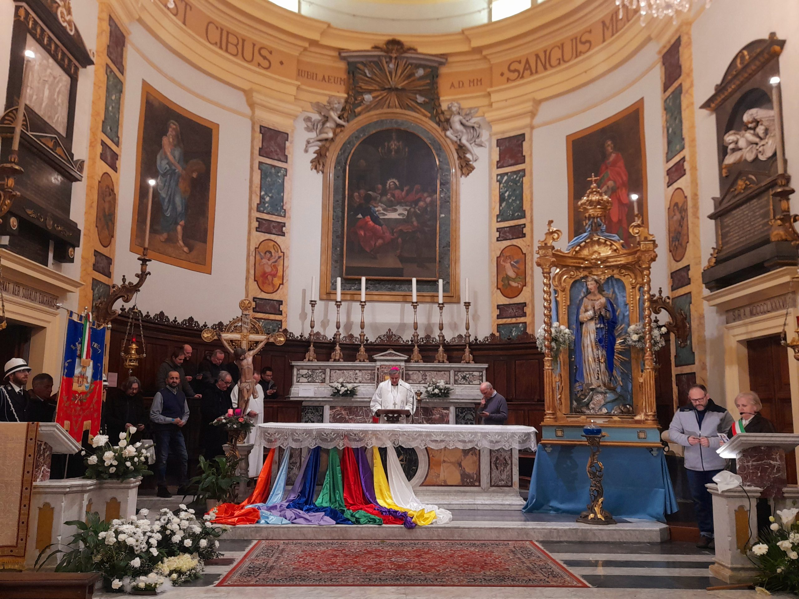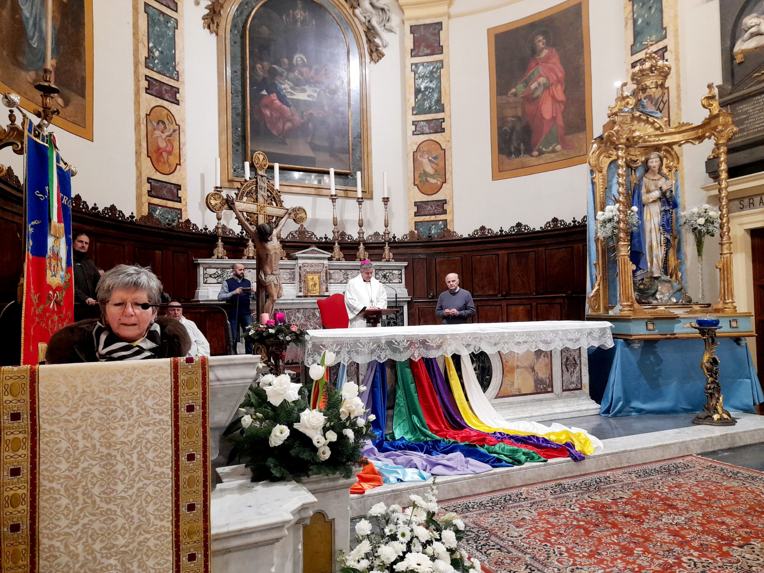 A seguire, mons. Gianpiero Palmieri ha presieduto la Santa Messa. Durante l’omelia, l’arcivescovo ha spiegato i due miti presenti nel Libro della Genesi: “Prima che Dio creasse il mondo, Egli ci aveva già pensato. Sì, l’amore di Dio aveva già dato vita alla nostra esistenza nel Suo pensiero. Il Padre aveva, nell’eternità, generato un Figlio perché fosse, nel tempo, primogenito di una moltitudine di fratelli e di sorelle, perché nel tempo avrebbe creato gli uomini e gli uomini sarebbero stati creati come figli adottivi di Dio. Ed è così che Dio, quando ha generato il Figlio, in Lui, ha pensato a ciascuno di noi. Nel Suo amore, fin dall’eternità, il Padre ha creato ciascuno di noi, in Cristo ha pensato a ciascuno di noi. Questo significa che ogni uomo è creato come una creatura libera e capace di amare. Il percorso di ogni essere umano è quello di diventare uomo nuovo, donna nuova.