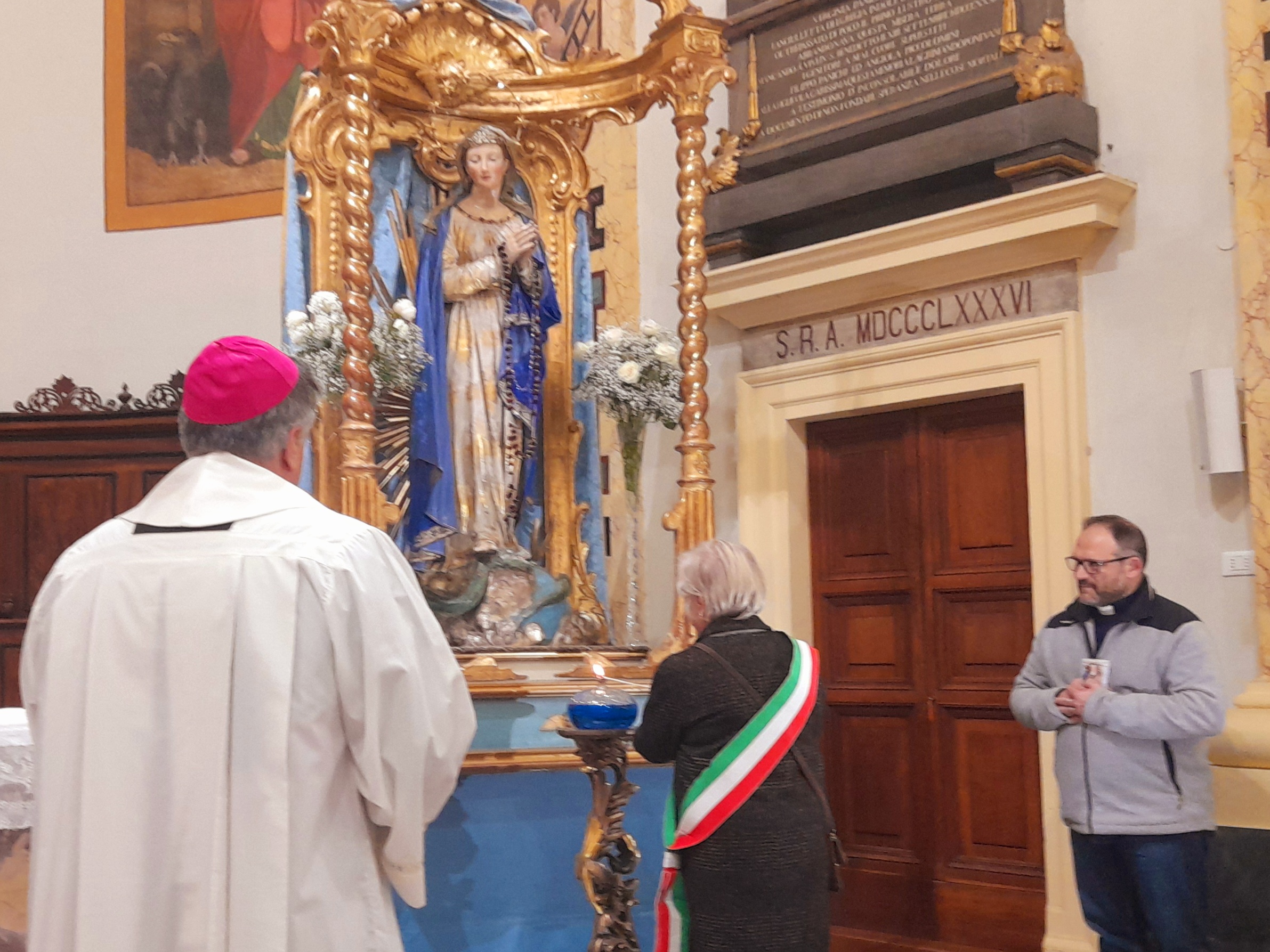 L’assemblea ha pregato con fede e devozione la Madonna Immacolata. Poi l’arcivescovo Gianpiero ha consegnato una candela, accesa dal cero pasquale, alla commissaria prefettizia Rita Stentella, la quale, a sua volta, ha usato quella piccola fiammella per accendere la lampada ad olio perenne posta ai piedi di Maria, rinnovando così non solo una tradizione, ma anche l’affidamento della comunità sambenedettese alla Madonna Immacolata, un segno della grande devozione mariana che abita nel cuore di molti cittadini.