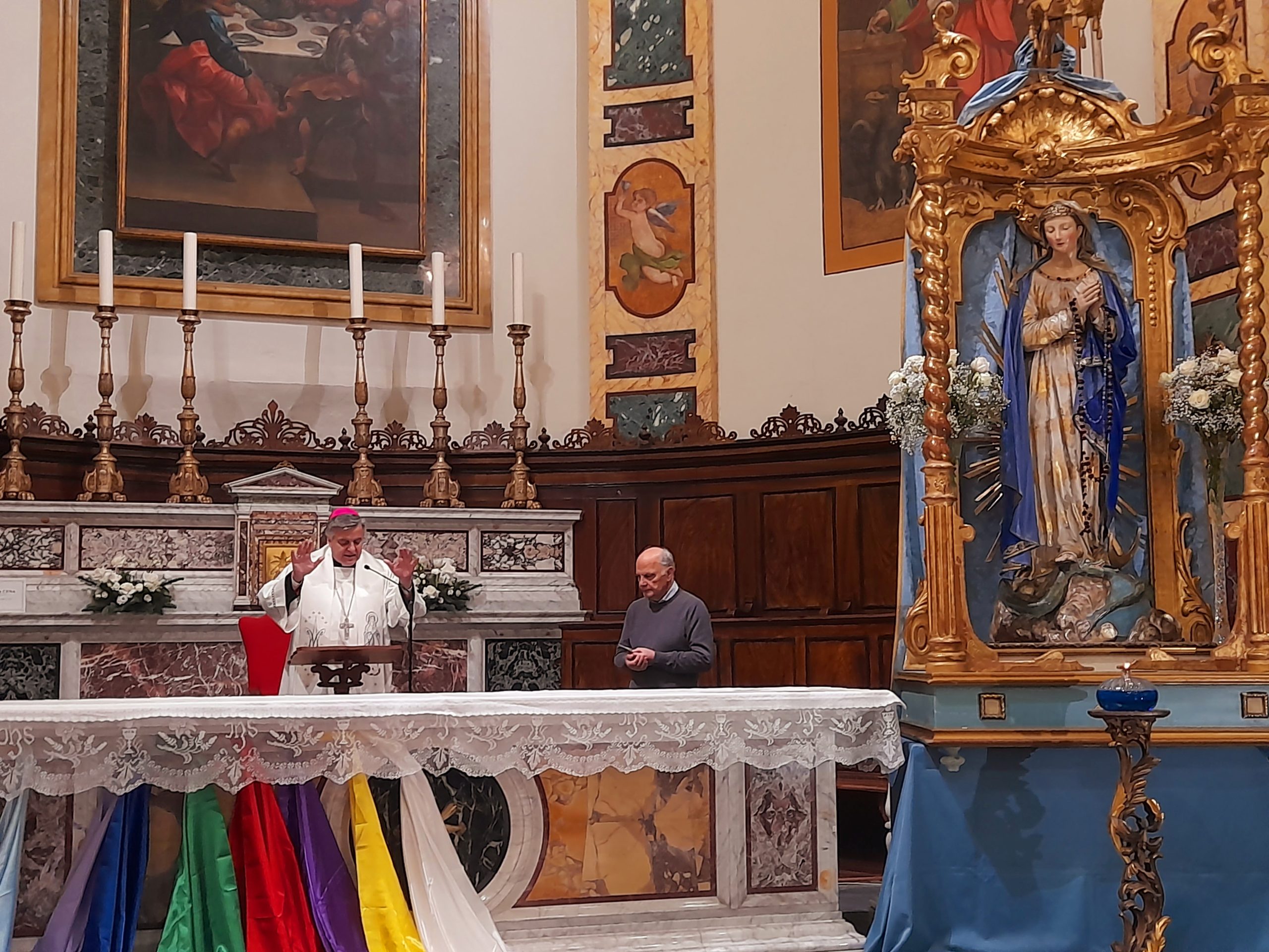 Ha infine concluso l’arcivescovo Gianpiero: “Maria ci insegna proprio questo. Maria è un segno che Dio pone nella storia umana per dire che il suo amore è una forza vittoriosa. Nella racconto della Genesi, infatti, alla donna viene promesso che, nonostante il male si insinuerà al suo calcagno, ella gli schiaccerà la testa. Sì, perché, quando accogliamo l’Amore nella nostra vita, quando accettiamo Dio nella nostra vita, il male nella nostra vita si spegne. Questa è la differenza: non fuggiamo più davanti a Dio! E quando noi ci apriamo all’Amore, ecco che si apre per noi il Paradiso già su questa terra. E questo riguarda la comunità cristiana, ma anche tutta la comunità civile. Quando noi, infatti, accettiamo il peccato e accogliamo il Signore, quando impariamo a vivere insieme a Dio e insieme agli altri, superando l’individualismo e l’egocentrismo del peccato, ecco che diventiamo pieni di gioia. E proprio perché la gioia si impossessa del nostro cuore, ecco che sperimentiamo una misteriosa forza: la comunità cristiana comunica vita e tutta la società civile ha voglia di diventare nuovamente feconda. Questo ci insegna Maria, a dire: ‘Ci sto, Signore! In questo tempo. In questa storia. Anche se non è del tutto chiaro quello che mi stai ponendo davanti, ci sto!’. Così sia, allora, dietro al Signore, dietro a Maria!”.