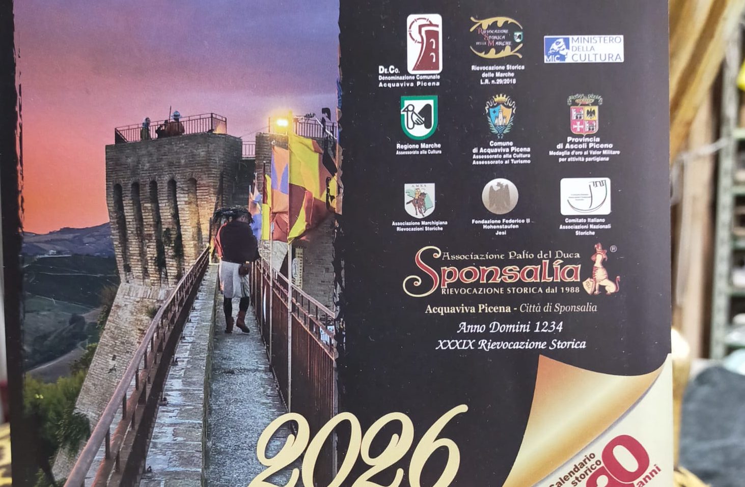 Il Palio del Duca annuncia con soddisfazione la pubblicazione del Calendario Storico 2026 di Sponsalia, giunto quest’anno alla prestigiosa XXX edizione. Dopo settimane di intenso lavoro da parte dei membri dell’Ente, l’Associazione comunica che il Calendario è ora disponibile per tutti gli interessati presso le filiali della BCC Banca del Piceno e presso la sede del Palio del Duca, in via San Rocco 7 ad Acquaviva Picena.