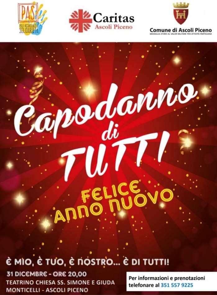ASCOLI PICENO – “Capodanno di tutti“: è questo il titolo della cena di solidarietà organizzata dalla Diocesi di Ascoli Piceno per il prossimo 31 Dicembre 2025, un evento che unisce gusto, convivialità e impegno sociale per sostenere le famiglie più fragili.