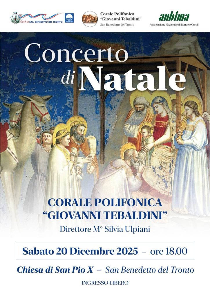 Nella chiesa di San Pio X, a San Benedetto del Tronto, la Corale Polifonica “Giovanni Tebaldini” terrà il tradizionale concerto di Natale oggi, Sabato 20 Dicembre 2025, alle ore 18:00.
