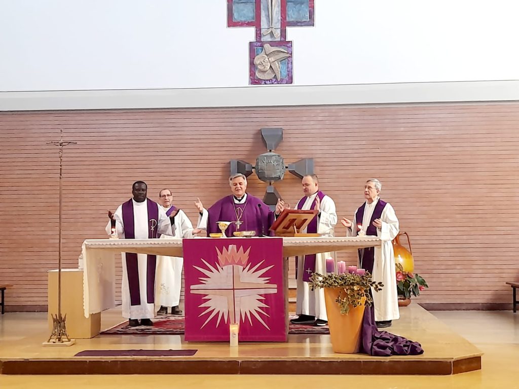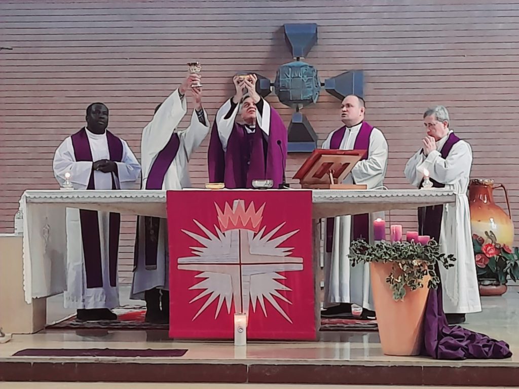 Dopo la Messa, i fedeli, i preti e il vescovo si sono recati nella sala parrocchiale “San Giacomo della Marca” per consumare insieme il pranzo. Oltre ad essere un piacevole momento di convivialità, il pomeriggio è stato anche l’occasione per don Luca di conoscere alcuni nuovi parrocchiani e di condividere con loro una parola e un sorriso.