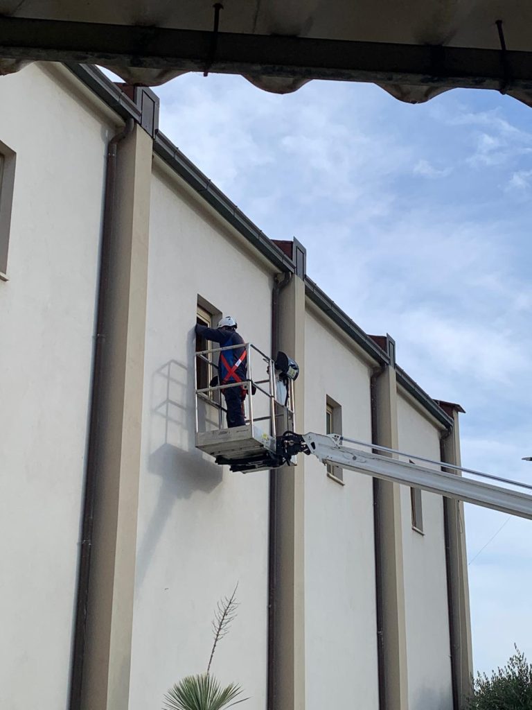 I lavori hanno riguardato in particolare la sostituzione degli infissi e dei vetri delle finestre laterali e del grande finestrone centrale della facciata d’ingresso, ormai deteriorati dal tempo e dalle intemperie. Sono stati inoltre installati specifici meccanismi che consentono l’apertura delle finestre, migliorando così l’aerazione degli ambienti interni.