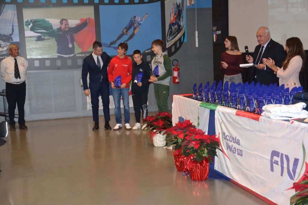 Ad Ancona, nella Sala CONI, il Comitato Regionale Fiv della Decima Zona Marche ha premiato Giorgio Nibbi, Agata Bonaventura, Antonio di Lorenzo, gli equipaggi che hanno partecipato al Nastro Rosa Tour e Platu25, oltre all’equipaggio Flying Dutch formato da Matteo Pincherle e Carlo Carincola.