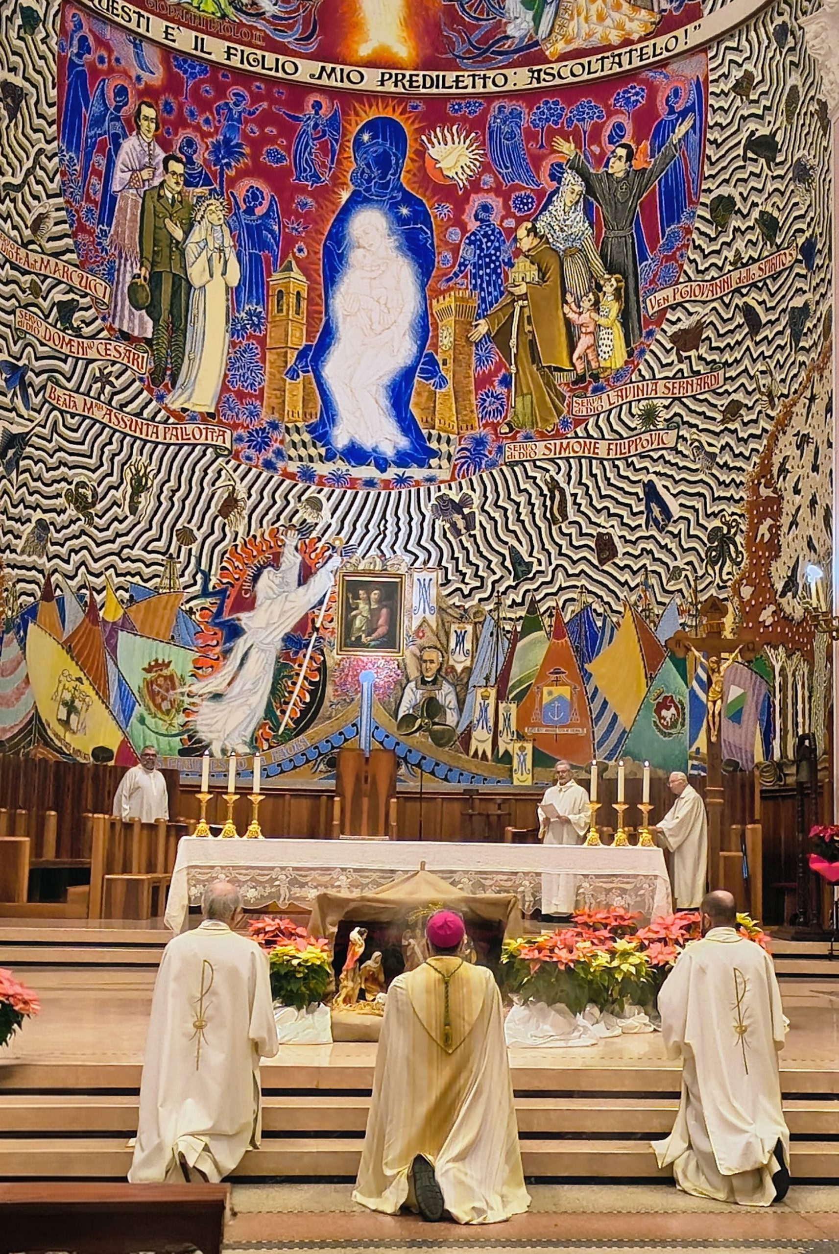 I presenti, uniti in un unico coro, hanno intonato “La terra, il cielo e il mare, acclamano il tuo Avvento, o Figlio, o Figlio di Dio“, esprimendo la gioia per la nascita del Salvatore. Tutta la Celebrazione è stata impreziosita dalle armonie del coro diretto dal M° Filippo Sorcinelli.