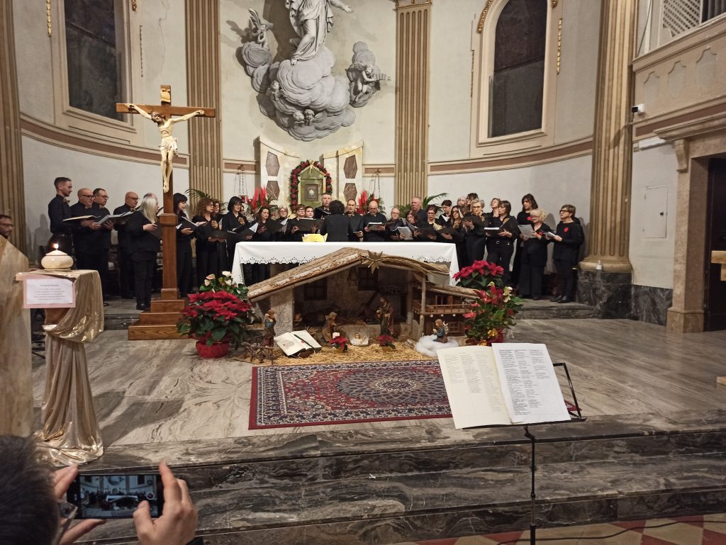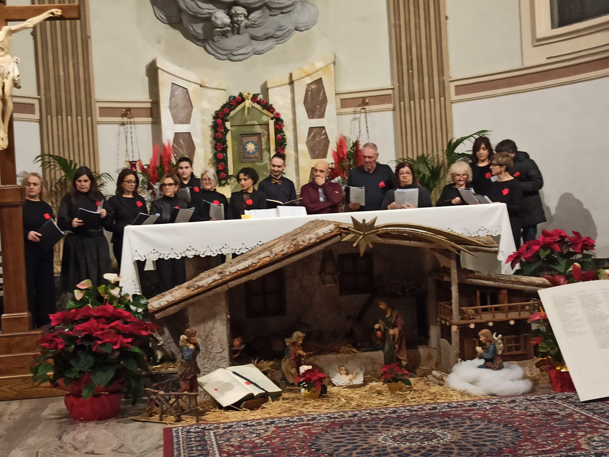 A conclusione della serata, a sorpresa, tutti i cori e il pubblico insieme hanno intonato “Tu scendi dalle stelle”, accompagnati dall’impeccabile organetto di Don Paolo, regalando un momento di intensa emozione collettiva.