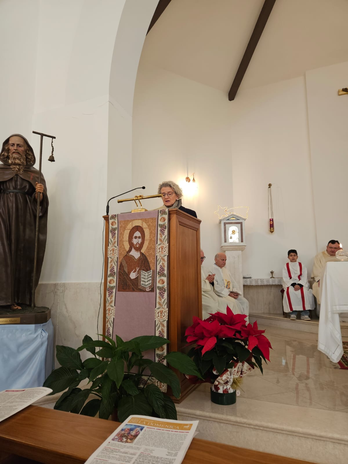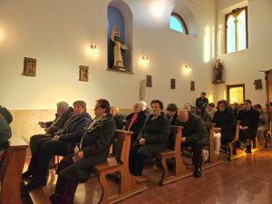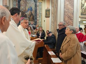 “Quello che è meravigliosamente sorprendente è che Gesù, il Figlio di Dio fatto uomo, abbia voluto vivere dentro una famiglia e, proprio nella dinamica della famiglia umana, ha voluto vivere la logica dell’imparare dal punto di vista umano, come ciascuno di noi. Anche il Vangelo sottolinea che Gesù era sottomesso ai suoi genitori. Gesù cresceva in età, sapienza e grazia – ha spiegato l’arcivescovo Gianpiero – Gesù, realmente uomo, non aveva nessuna pretesa di bastare a se stesso, aveva bisogno degli altri, perché nessun uomo basta a se stesso. Questa idea che siamo connessi agli altri nasce dalla Bibbia, ma oggi non è molto di moda, c’è un individualismo delirante: dai sondaggi emerge che il 47 % delle famiglie italiane è formato da una sola persona. In pratica per molte persone non c’è famiglia. Vivere da soli è una grande tentazione, ma è sbagliato: nessuno ci può correggere, non abbiamo confronto. Ho scelto il celibato per vocazione: quando la sera vado a dormire sono solo, perché il Signore mi ha chiamato a questo. Ma i coniugati si ritrovano in due a letto e si parlano, si chiedono che cosa è accaduto, allora non si ha scampo. Dobbiamo riflettere su noi stessi, perché la persona che ci vuol bene e che abbiamo scelto, ci legge in viso il nostro stato d’animo. Questo è sano, perché ci aiuta a superare l’individualismo. Non è bello vivere come un’isola senza confrontarsi con gli altri, il rischio dell’ individualismo e dell’egoismo è molto alto. E la Comunità cristiana è una famiglia di famiglie. Federico e Claudio vanno d’accordo, si vogliono bene, si compensano, si aiuteranno senz’altro sia a Trivio che a Cossignano, si sosterranno insieme. Allora buon cammino! Camminiamo tutti insieme nella nostra Chiesa Diocesana!”