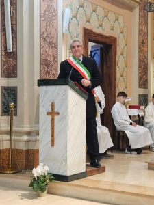 “Grazie alla comunità grottammarese, che qui vedo presente in chiesa e anche agli altri ex parrocchiani di don Federico, di Centobuchi e Villa Rosa: siete i benvenuti a Cossignano! Il grazie più grande, però, lo rivolgo a Lei, mons. Palmieri , per aver ascoltato il grido della nostra piccola comunità che stava soffrendo dal punto di vista pastorale. Sono già felice di vedere così tanti chierichetti e la chiesa così piena oggi! Grazie! Prima eravamo disorientati, abbiamo avuto in sei anni una alternanza di sacerdoti senza continuità, Lei ci ha ascoltato, ci ha dato un sacerdote saggio, maturo e un sacerdote giovane pieno di entusiasmo: la spinta, la gioventù, unite alla saggezza e alla tradizione. Non potevamo sperare di meglio, grazie Vescovo! Stiamo crescendo demograficamente, abbiamo nuove famiglie e ci mancava una stabilità parrocchiale. Grazie alla Madonna Assunta, che, con San Giorgio nostro patrono, benedica tutti. Don Federico, ti accogliamo come Padre e Guida spirituale! Grazie don Claudio, ti aiuteremo e cammineremo insieme!”