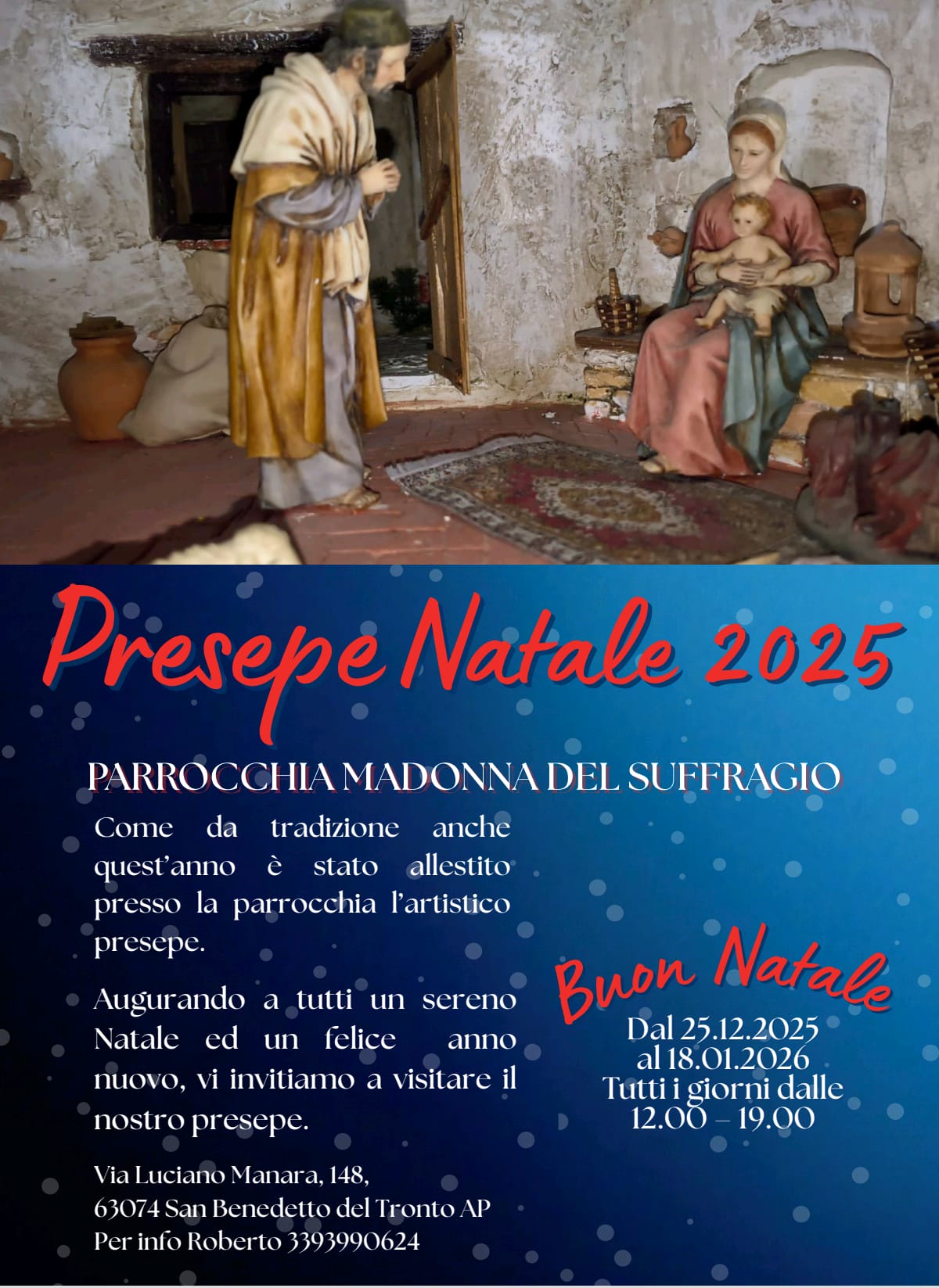 SAN BENEDETTO DEL TRONTO – È aperto al pubblico già dal giorno di Natale il presepe artistico allestito nella parrocchia Madonna del Suffragio in San Benedetto del Tronto.