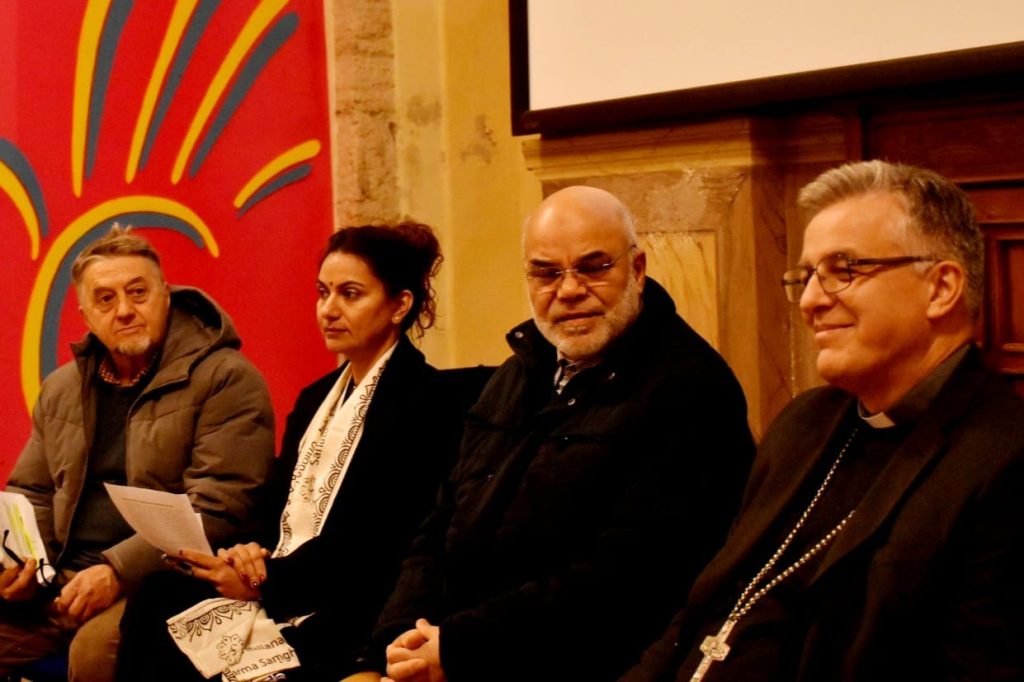 A rompere il ghiaccio è stata Sonia Bali, referente dell’induismo per Marche ed Abruzzo, la quale ha affermato: “La parola ‘namastè’, per noi induisti, racchiude tutto il senso del nostro pensiero. Essa infatti significa ‘La luce divina che è in me, saluta ed accoglie la luce divina che in te’. Quando riconosciamo questa luce, non esiste più l’altro, ma un noi universale. Noi quindi oggi non siamo qui non solo per un cambio di calendario, ma per purificare il nostro sguardo e comprendere che siamo figli di un’unica trama cosmica e che, se si spezza un filo, tutto il cosmo ne risente”.