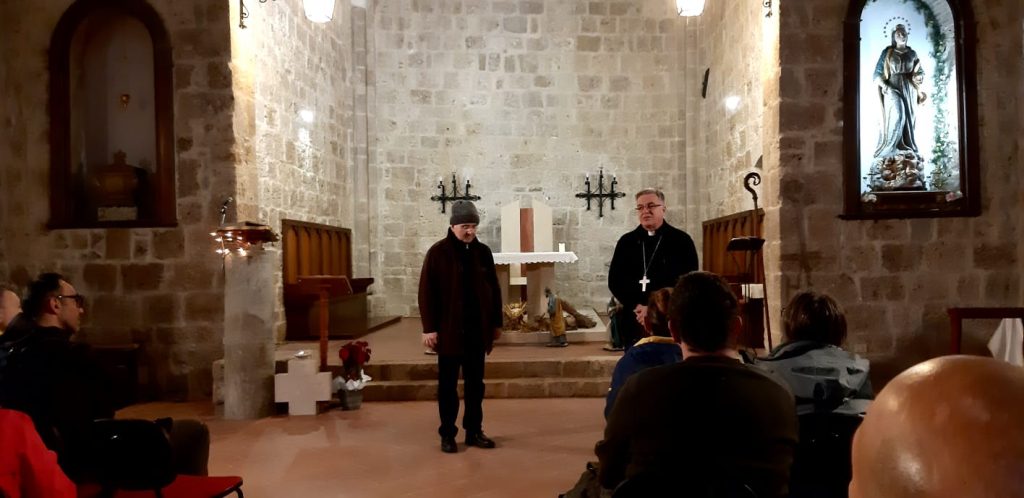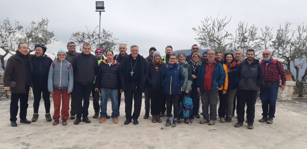 Successivamente il gruppo ha ripreso il cammino verso l’Abbazia di Montesanto, dove ad attenderli c’erano Mons. Gianpiero Palmieri, Vescovo delle diocesi di Ascoli Piceno e San Benedetto del Tronto – Ripatransone – Montalto, e il Rettore don Gianluca Pelliccioni, per la conclusione di una tappa particolarmente significativa del percorso.