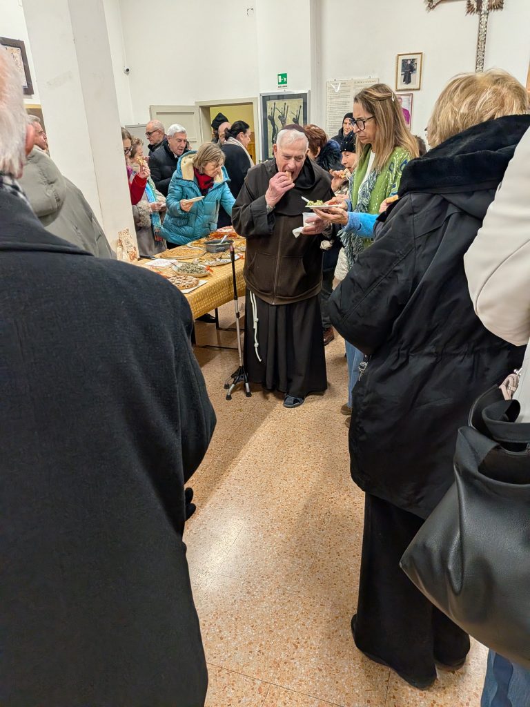 L’atmosfera era caratterizzata da familiarità e calore, ogni parrocchiano, lì presente, aveva portato qualcosa da mangiare e da bere per ringraziare e celebrare un uomo che ha dedicato, per 24 anni, un onoratissimo servizio alla loro parrocchia. Il tutto poi è stato condiviso tra i presenti, come da costume dei francescani.