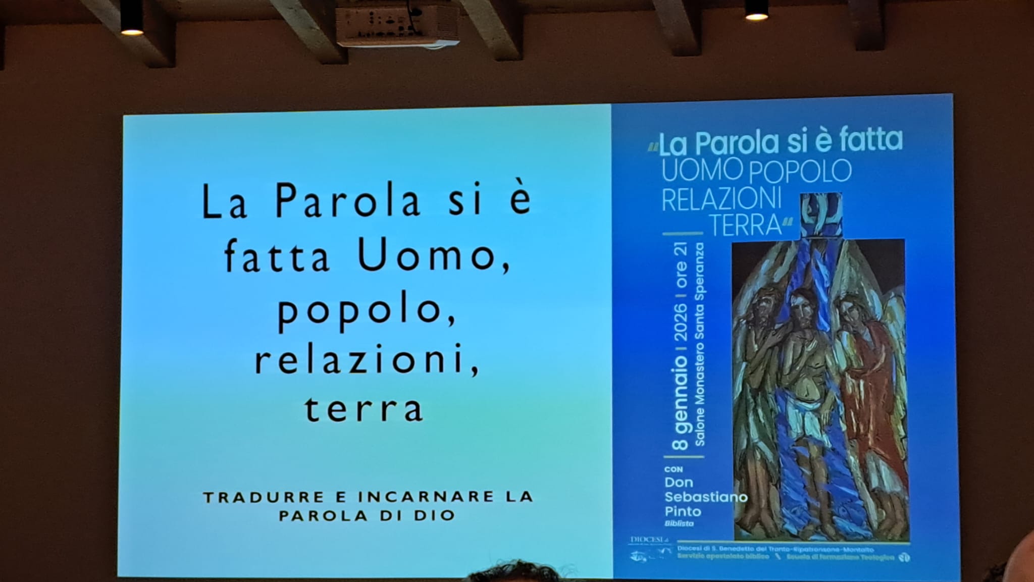 La riflessione si è conclusa con un richiamo forte alla dimensione relazionale dell’annuncio: la Parola non passa solo attraverso le parole, ma anche tramite gesti, azioni, arte, musica e vita vissuta. Accolta e incarnata, essa diventa relazione, comunità, terra condivisa. Un invito, per ogni credente, a rendere viva la Scrittura trovando ogni giorno l’“abito giusto” perché la Parola di Dio possa continuare a farsi carne nella storia.