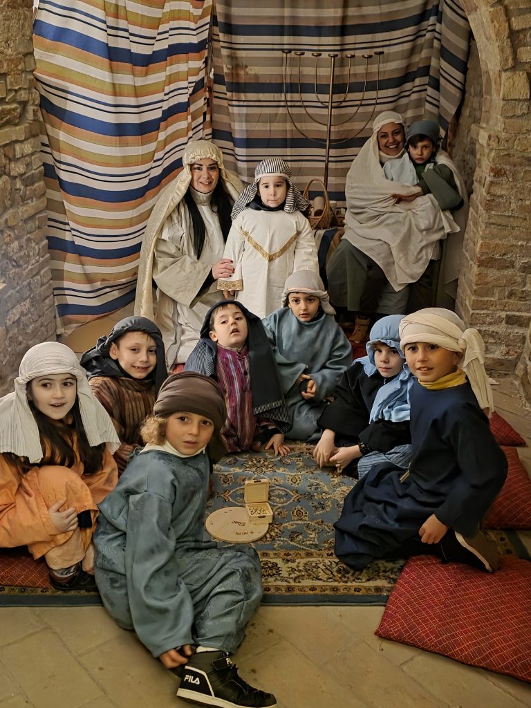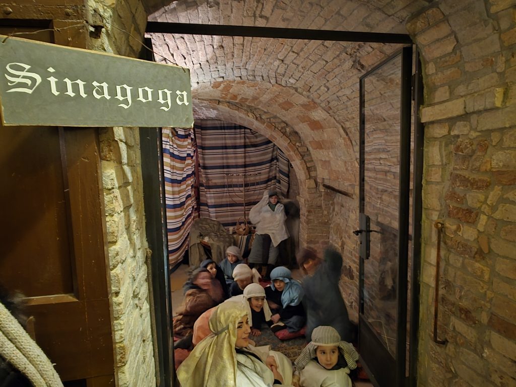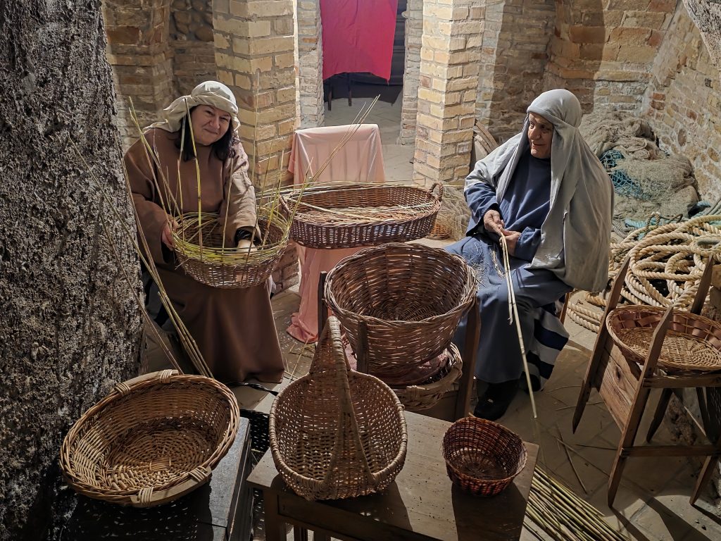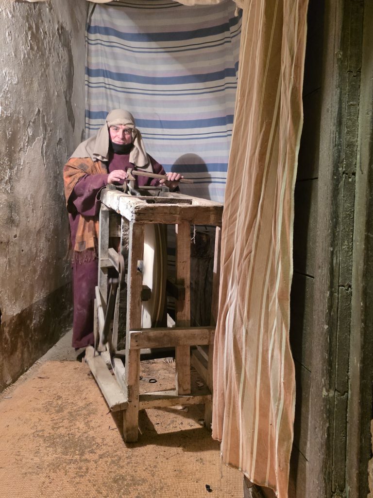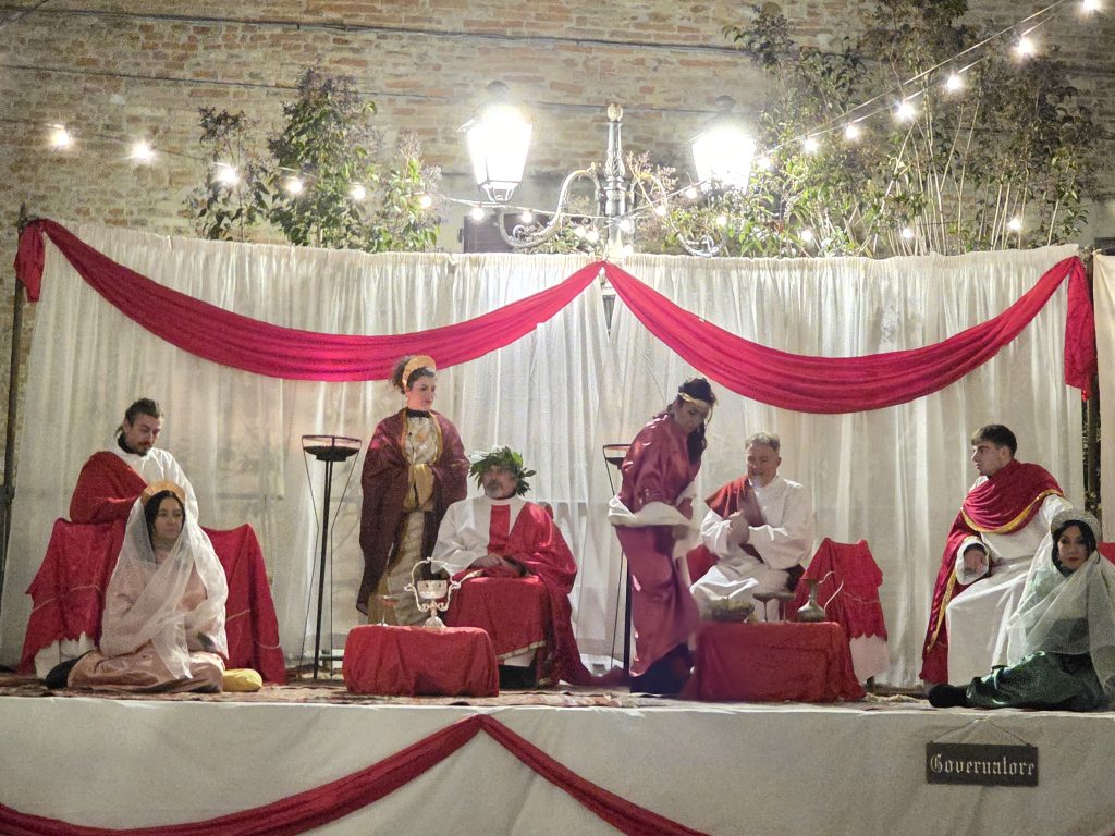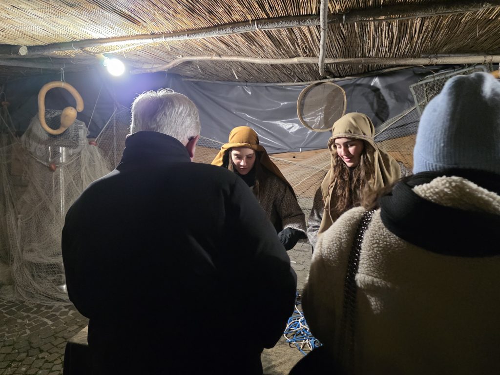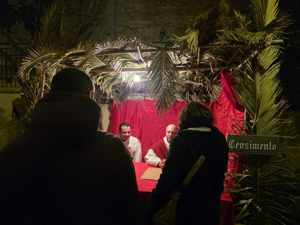 Lungo il percorso i visitatori hanno incontrato mangiafuoco, musicanti con cornamuse, danzatrici del ventre, soldati romani a cavallo, cambiavalute, aruspici, giocatori di dadi, astrologi, scribi, ma anche massaie, pescatori, pastori ed artigiani che svolgevano antichi mestieri, come il fabbro, il bottaio, il vasaio, la casara, il ramaio, il bottaio, l’arrotino e tanti altri. Numerose e bellissime le scene tratte dai racconti evangelici, come l’Annunciazione dell’Angelo a Maria, la Visitazione di Maria ad Elisabetta, il Censimento e la Corte di Erode, anche se la scena che maggiormente ha attirato l’attenzione e lo stupore dei visitatori è stata, come di consueto, quella della Natività con l’arrivo dei Magi e soprattutto la vista del Bambinello. Quest’anno la Sacra Famiglia è stata rappresentata da Erica e Nicolò Raschiatore, con il loro piccolo Gregorio. Presenti lungo il percorso anche tre punti di ristoro.