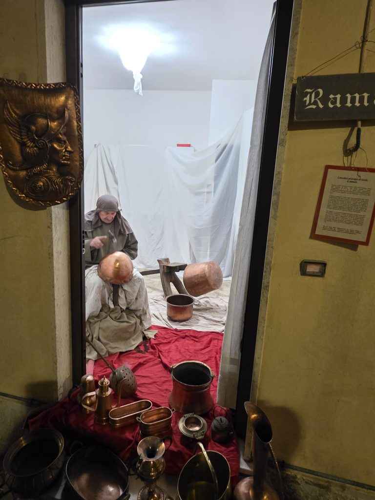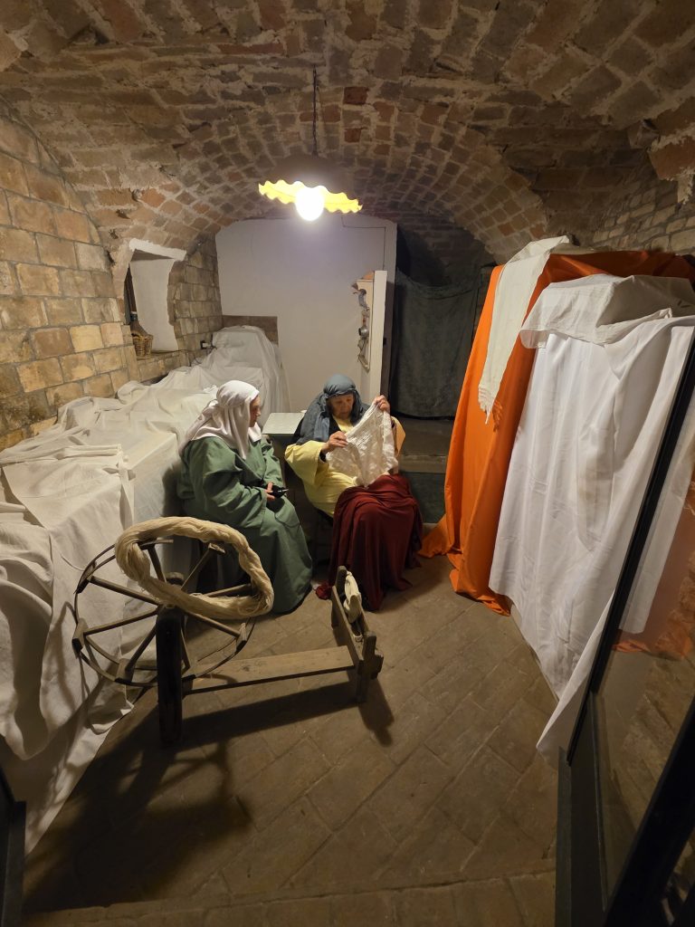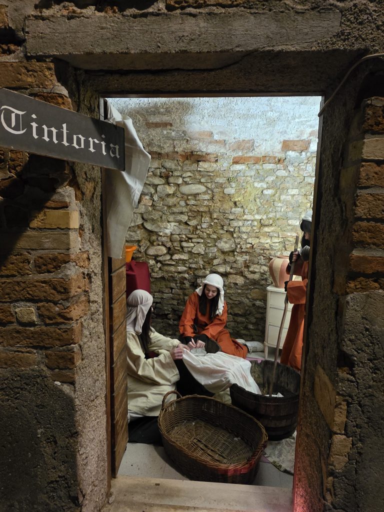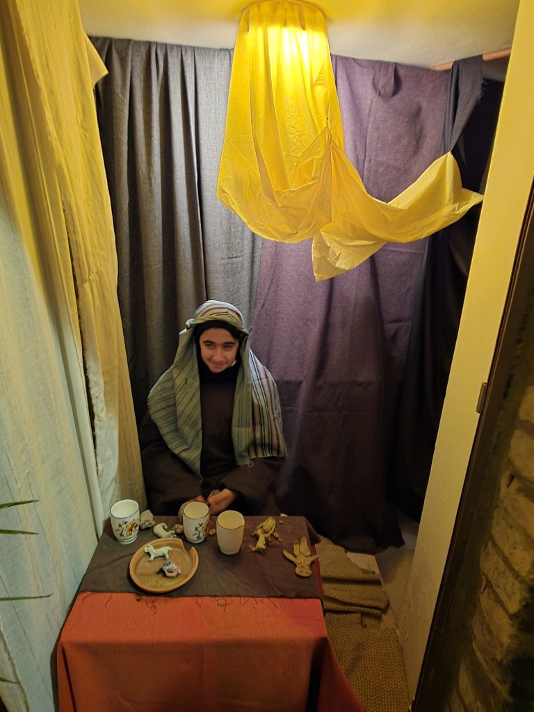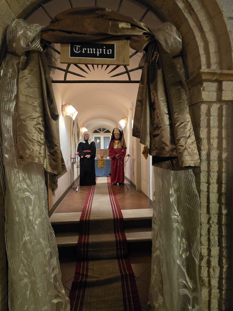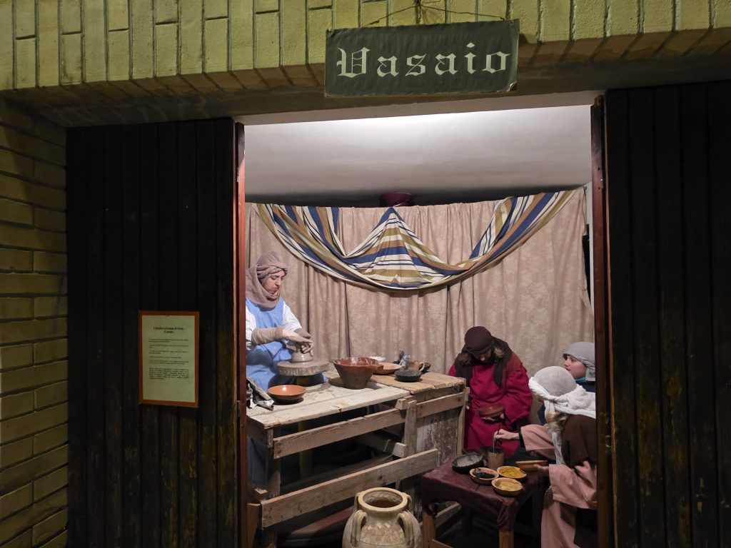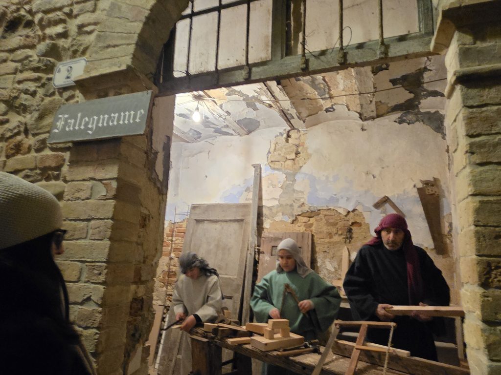 Lungo il percorso i visitatori hanno incontrato mangiafuoco, musicanti con cornamuse, danzatrici del ventre, soldati romani a cavallo, cambiavalute, aruspici, giocatori di dadi, astrologi, scribi, ma anche massaie, pescatori, pastori ed artigiani che svolgevano antichi mestieri, come il fabbro, il bottaio, il vasaio, la casara, il ramaio, il bottaio, l’arrotino e tanti altri. Numerose e bellissime le scene tratte dai racconti evangelici, come l’Annunciazione dell’Angelo a Maria, la Visitazione di Maria ad Elisabetta, il Censimento e la Corte di Erode, anche se la scena che maggiormente ha attirato l’attenzione e lo stupore dei visitatori è stata, come di consueto, quella della Natività con l’arrivo dei Magi e soprattutto la vista del Bambinello. Quest’anno la Sacra Famiglia è stata rappresentata da Erica e Nicolò Raschiatore, con il loro piccolo Gregorio. Presenti lungo il percorso anche tre punti di ristoro.