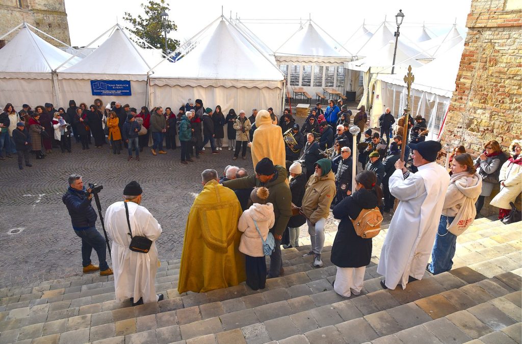 Il centro naturalmente è stato la Santa Messa in onore di Sant’Antonio Abate, celebrata da Padre Giorgio e concelebrata da Padre Giovanni, seguita dalla suggestiva processione che ha accompagnato la statua del Santo dalla chiesa di San Gregorio Magno fino alla scalinata della chiesa di Sant’Agostino. Qui si è svolta la benedizione delle numerosissime persone presenti e dei tanti animali condotti per l’occasione, in un clima di grande partecipazione e devozione.
