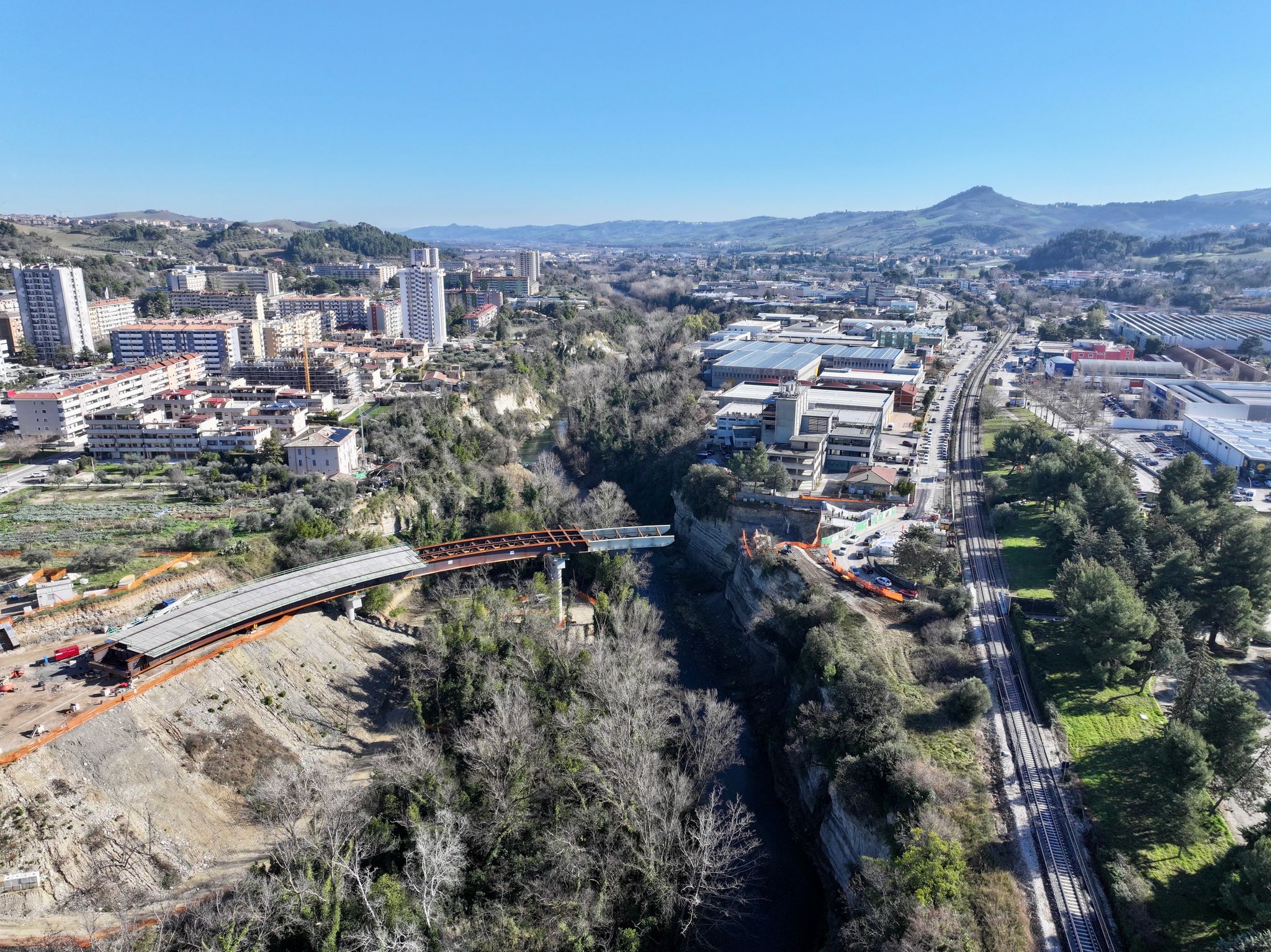 ASCOLI PICENO – Un momento di grande valore, tecnico e simbolico: con il varo finale del ponte sul Tronto, sul lato di Castagneti, si registra un importante passo in avanti per una delle opere pubbliche più attese e rilevanti. “La realizzazione di questa infrastruttura – ha dichiarato il sindaco Marco Fioravanti – rappresenta un evento storico che cambierà la viabilità della nostra città, unendo Monticelli a via Piceno Aprutina. Un progetto rimasto bloccato per anni e che finalmente vedrà presto la luce, grazie a tutti i professionisti e agli operai impegnati nel cantiere”. Questo ulteriore passaggio segna il completamento delle principali attività strutturali mediante la tecnologia del varo a spinta. “Stiamo portando avanti un lavoro molto complesso – ha aggiunto l’assessore ai Lavori pubblici, Marco Cardinelli – e anche per questo ci tengo a ringraziare le imprese, i professionisti e le maestranze. L’avanzamento dell’opera porterà presto Ascoli ad avere un ponte funzionale, che migliorerà significativamente la viabilità e darà un assetto nuovo agli spostamenti cittadini”.