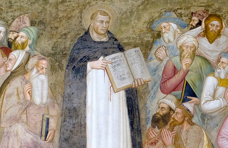 Proclamato santo da Giovanni XXII nel 1323, san Tommaso d’Aquino è uno dei protagonisti della fede e della cultura, non solo nel medioevo. Nato a Roccasecca, in provincia di Frosinone, – siamo ancora incerti sulla data, che oscilla tra il 1224 e il ’25 (alcune fonti parlano del 1226) – e morto nell’abbazia di Fossanova nel 1274, ha influenzato fortemente la filosofia, l’arte e la letteratura. Non è un caso che nel Paradiso, Dante faccia parlare di una figura a lui molto cara, san Francesco, proprio al grande rappresentante dell’altro ordine mendicante, i Domenicani. Con parole tra le più alte, commosse e celebri dell’intera Commedia: la nascita del Poverello viene ricordata con le celebri parole “nacque al mondo un sole”.