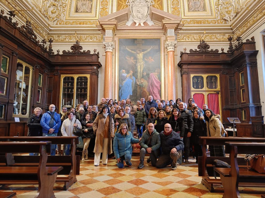 Dopo il pranzo al sacco nell’Oratorio, nel primo pomeriggio ci siamo trasferiti nella meravigliosa Sala del Tesoro, meglio conosciuta come Sala del Pomarancio nell’interno del Santuario. Qui il frate cappuccino padre Giuseppe Maria ci ha spiegato in modo approfondito la storia della Santa Casa, le cui mura rappresentano le reliquie più preziose presenti nella nostra regione, e ci ha raccontato le grazie ricevute da pellegrini illustri venuti a Loreto e la storia del pittore Pomarancio, che risultò perdente nella gara di appalto per la Cappella Sistina e a cui fu affidata l’opera pittorica presso la Cappella attigua al Santuario, che oggi viene definita la Cappella Sistina delle Marche.