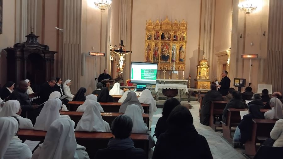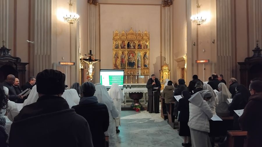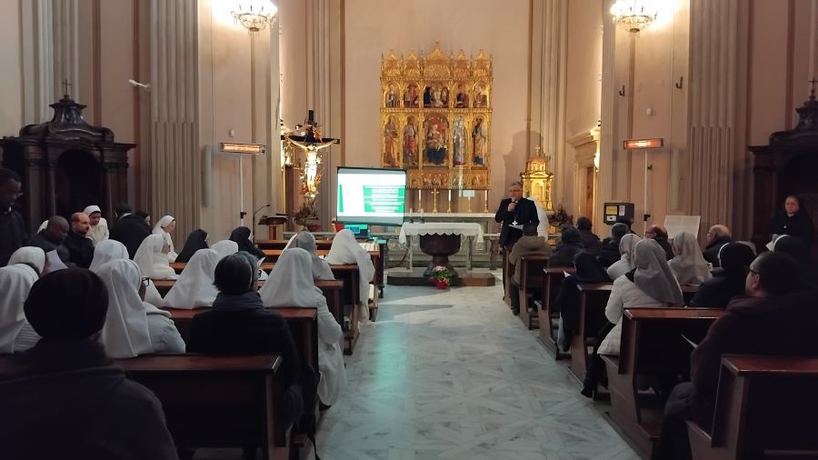 Dopo la recita dell’Ora Media, mons. Palmieri ha introdotto l’incontro ricordando come Dio abbia scelto la via della Croce per amore dell’umanità, caricandosi dei peccati degli uomini. «L’amore di Dio – ha sottolineato – è il vino nuovo che va messo in otri nuovi. La misericordia del Signore scende nella nostra vita: Lui è il vino buono che ci trasforma e ci rende nuovi».