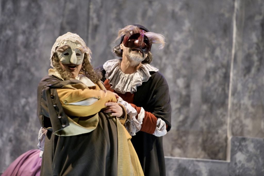 Gioco, invenzione, amore, paura e dramma si mescolano tra le smorfie inamovibili delle maschere, gli intrecci si ingarbugliano sull’equivoco e lentamente si dipanano tra le dita dei personaggi. Se questo mondo surreale e fantastico, eco lontana di uno splendore teatrale italiano, eclettico equilibrismo sul filo della storia e della tradizione, se queste eteree figure ci permetteranno di abbandonarci a una gioia senza peso e senza tempo, forse in quel preciso istante ritroveremo un briciolo di poesia.