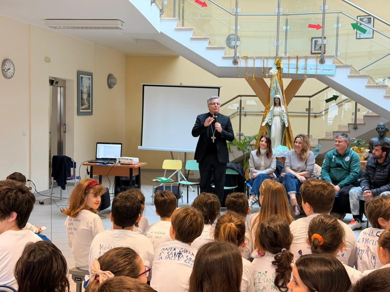I bambini, preparati nei giorni precedenti, hanno rivolto agli ospiti domande profonde e sorprendenti, segno di un’autentica interiorizzazione del tema. Particolarmente intenso è stato il saluto rivolto al Vescovo Gianpiero Palmieri, accolto con gratitudine per la sua presenza in una settimana così significativa, e invitato a indicare ai ragazzi una strada sicura per crescere come uomini e donne di pace.