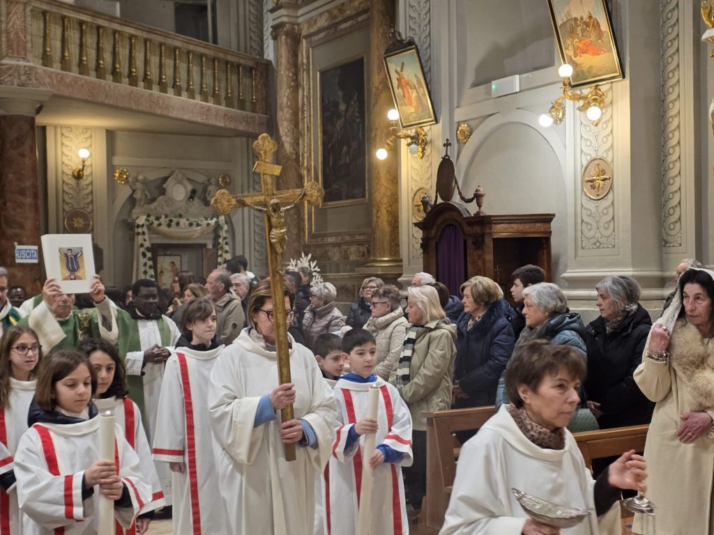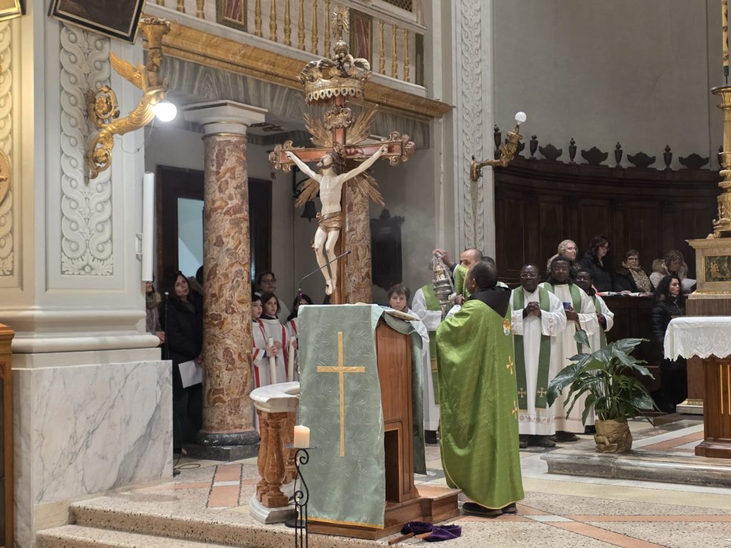 Prima della benedizione finale, Daniela Neroni, segretaria del Consiglio Pastorale Parrocchiale, ha portato al nuovo parroco il saluto dell’intera comunità : “Padre François, con fiducia e speranza ti apriamo le porte della nostra parrocchia, delle nostre famiglie, delle nostre storie e ti affidiamo la vita della nostra comunità , la fede dei più piccoli, il cammino dei giovani, le attese degli adulti e la fragilità degli anziani e di chi vive momenti difficili. Sappiamo che iniziare un nuovo Ministero non è mai semplice: ci sono da conoscere, realtà da comprendere, ritmi da imparare. Ma ti assicuriamo fin da subito che non sarai mai solo. Desideriamo collaborare con te con spirito di collaborazione e con cuore aperto, affinché la parrocchia sia la casa di tutti e la nostra sia una comunità viva, accogliente e missionaria“.