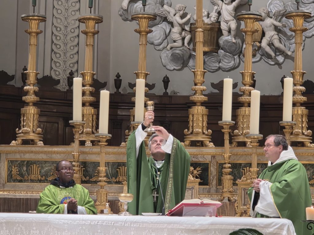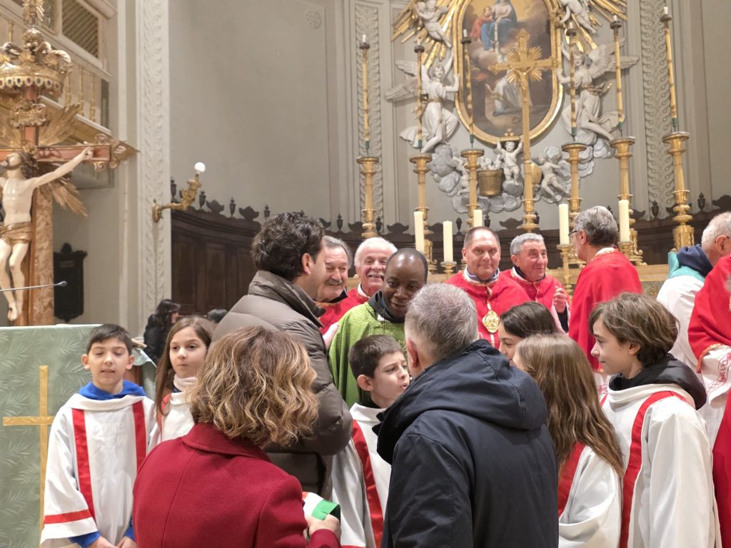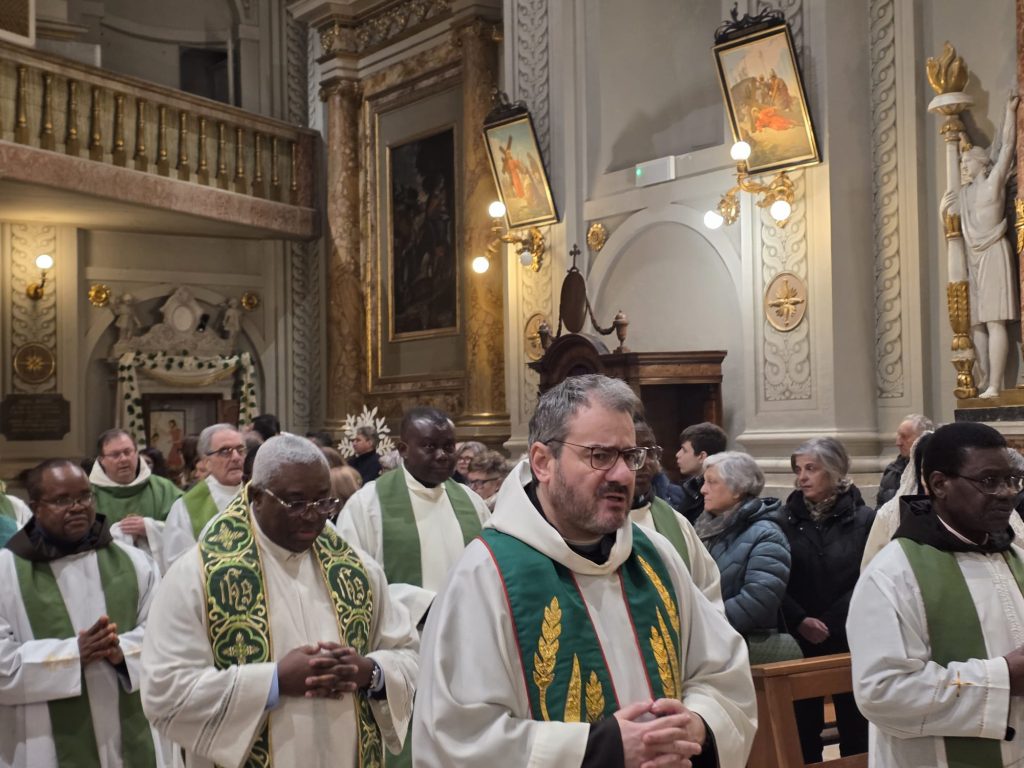 Dopo la Messa, i fedeli e i sacerdoti si sono recati nel vicino salone parrocchiale per un piacevole momento di convivialità , al quale hanno partecipato i vari preti presenti e anche il vescovo Palmieri. La serata è stata una buona occasione per padre François per conoscere molti parrocchiani e condividere con loro una parola e un sorriso.