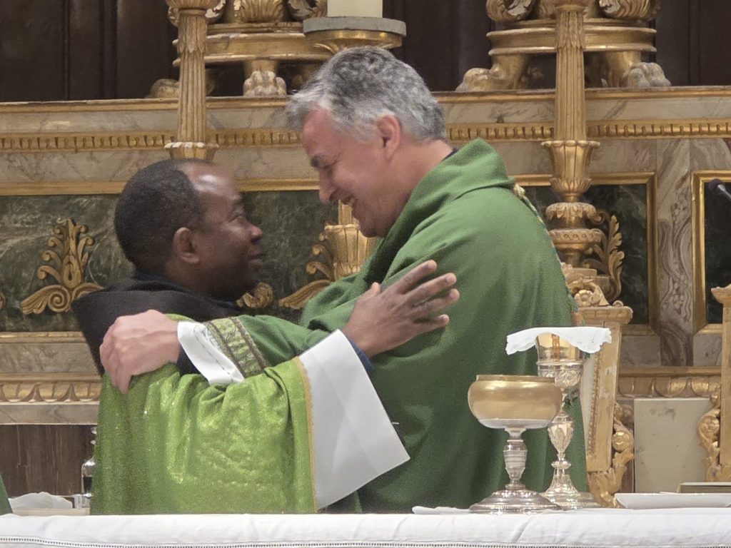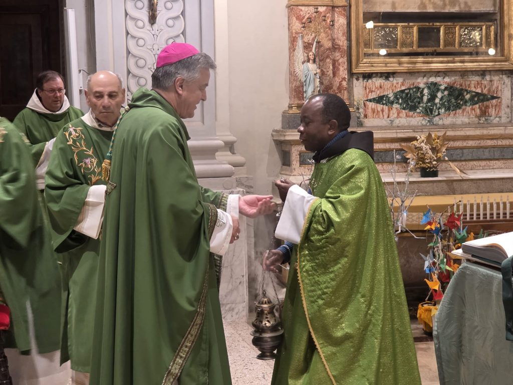 Il vescovo Gianpiero ha infine concluso ricordando anche don Vincent Chukwumamkpam Ifeme, che ha preceduto padre François alla guida della comunità monteprandonese: “Passiamo dalla Nigeria al Congo belga. Noi ringraziamo il Cielo per averci donato don Vincent e padre Francois, che sono giunti dal continente misterioso e bellissimo dell’Africa per servire questa comunità . Ringrazio don Vincent per quanto ha compiuto con voi. Ora tocca a padre François raccogliere questa eredità e proseguire. La sfida a cui è chiamato è quella di unire la comunità di San Nicolò di Bari con quella di San Giacomo della Marca. Le due comunità saranno un’unica comunità . Sarà facile? Solo Dio lo sa. Ad ogni modo è quello a cui siamo chiamati, è quello che il Signore vuole. Allora proviamo a camminare insieme, a costruire una comunità che vive dello stesso Vangelo ed è illuminato dallo stesso Spirito Santo.