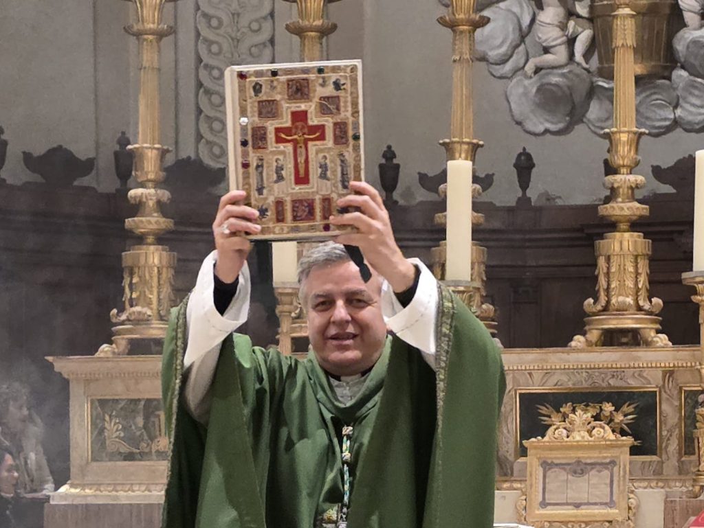 Il vescovo Gianpiero ha poi spiegato dettagliatamente come nel rito d’ingresso quello che viene detto e fatto rende molto chiaro questo dono: “A padre François viene detto: ‘Abbi cura di questo piccolo popolo credente, della sua fede!‘. Per questo motivo è il parroco che proclama per la prima volta il Vangelo. E nella benedizione che ieri sera padre Francois mi ha chiesto, abbiamo invocato Dio affinché il vostro nuovo parroco possa sempre proclamare con gioia il Vangelo del Signore, non solo stasera ma sempre, e che poi questa Parola possa essere spiegata, illustrata, aperta a tutti, in modo da potercene nutrire continuamente.