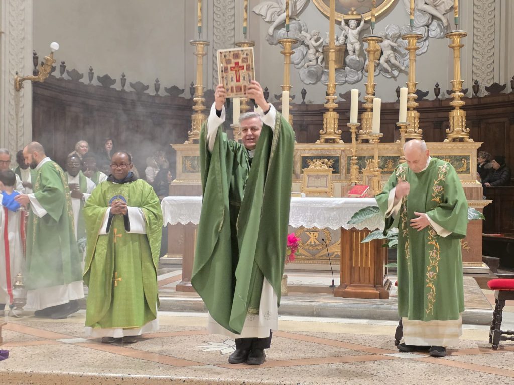 A seguire il nuovo parroco ha poi compiuto due gesti liturgici molto significativi che esprimono il suo mistero in mezzo alla comunità ecclesiale e che il vescovo Gianpiero ha ben spiegato durante la sua omelia. Prima l’aspersione dell’altare e di tutti i fedeli con l’acqua benedetta del Fonte Battesimale, in quanto il suo compito sarà riattualizzare continuamente nei parrocchiani il dono grande che hanno ricevuto il giorno in cui sono stati battezzati. Poi la venerazione dell’altare con il bacio e l’incensazione dell’altare, della croce e dell’assemblea, in quanto la missione del nuovo parroco sarà quella di ricordare che l’unico fondamento della comunità cristiana è Gesù, che è sposo della Chiesa e che nella Liturgia è simboleggiato dall’altare.