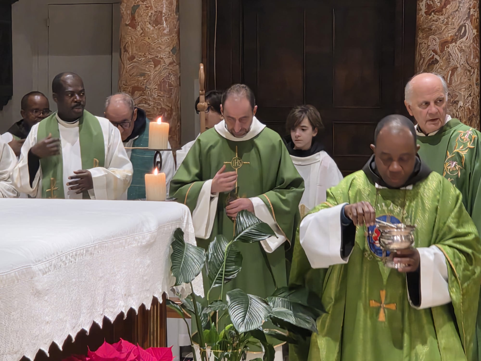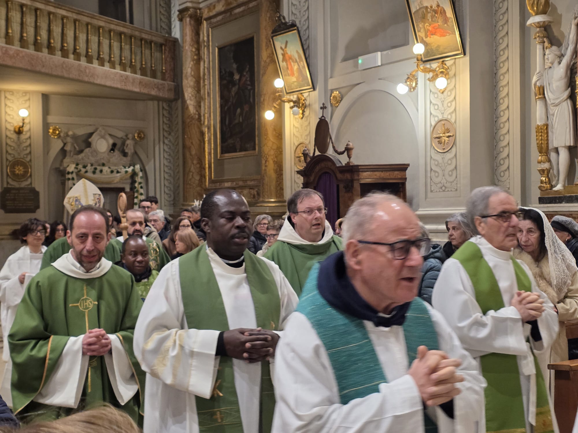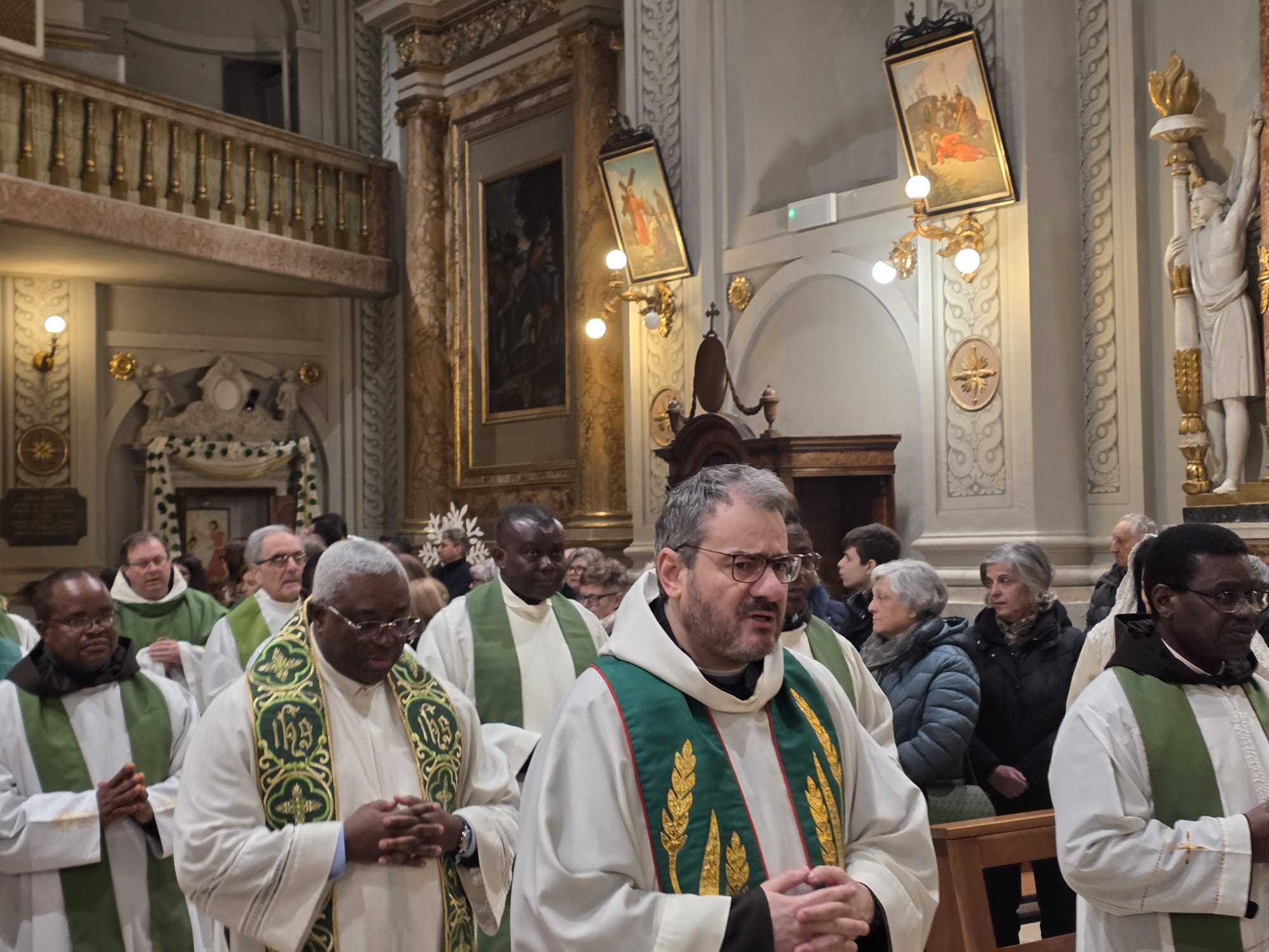 Dopo la Messa, i fedeli e i sacerdoti si sono recati nel vicino salone parrocchiale per un piacevole momento di convivialità, al quale hanno partecipato i vari preti presenti e anche il vescovo Palmieri. La serata è stata una buona occasione per padre François per conoscere molti parrocchiani e condividere con loro una parola e un sorriso.