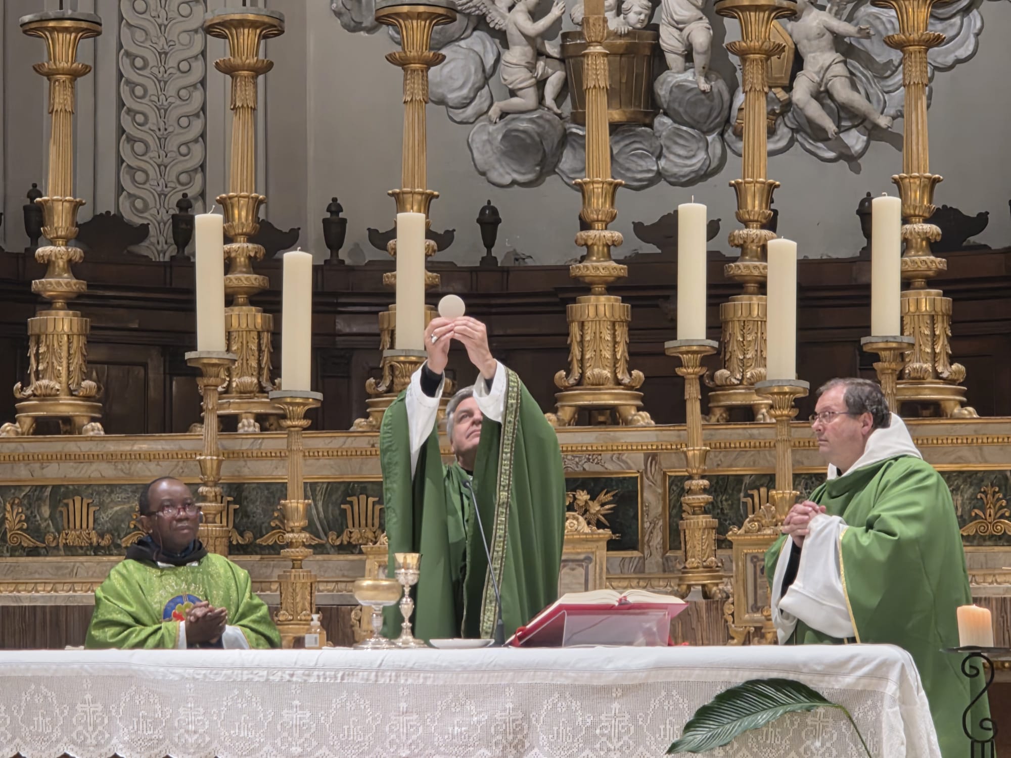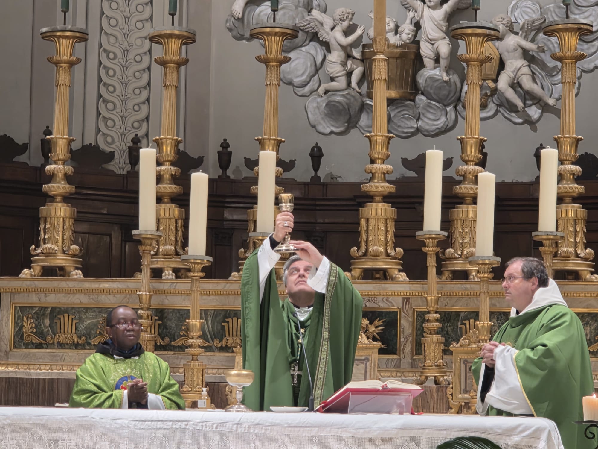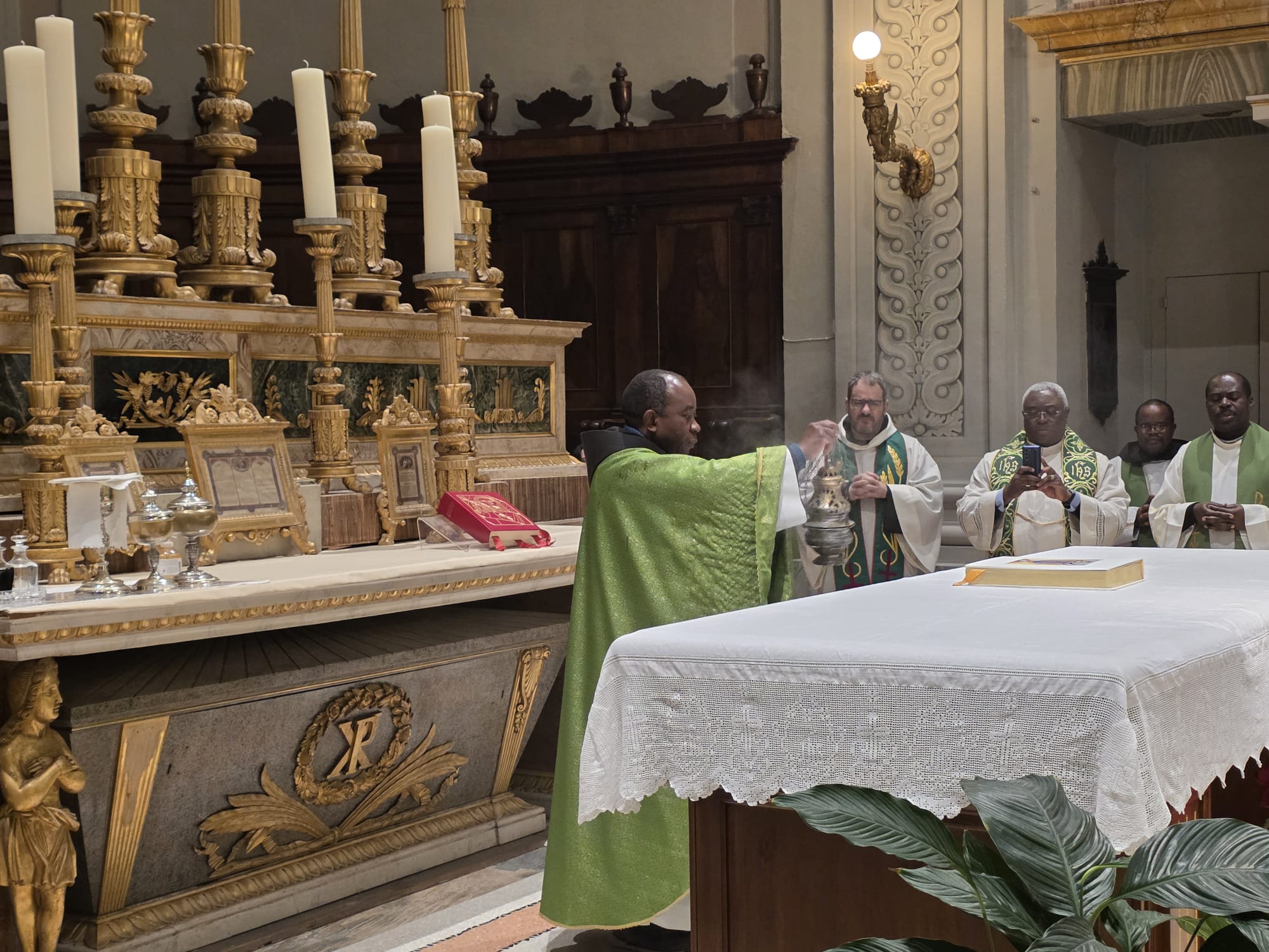 Dopo la Messa, i fedeli e i sacerdoti si sono recati nel vicino salone parrocchiale per un piacevole momento di convivialità, al quale hanno partecipato i vari preti presenti e anche il vescovo Palmieri. La serata è stata una buona occasione per padre François per conoscere molti parrocchiani e condividere con loro una parola e un sorriso.