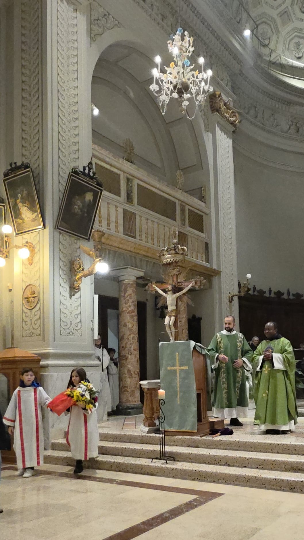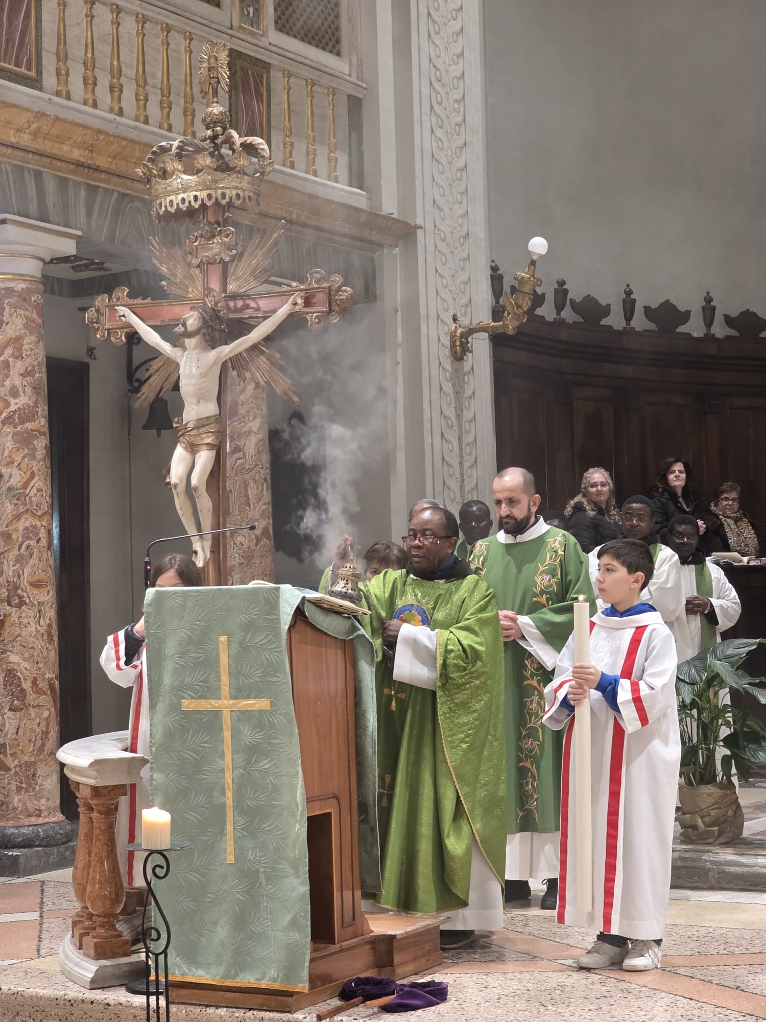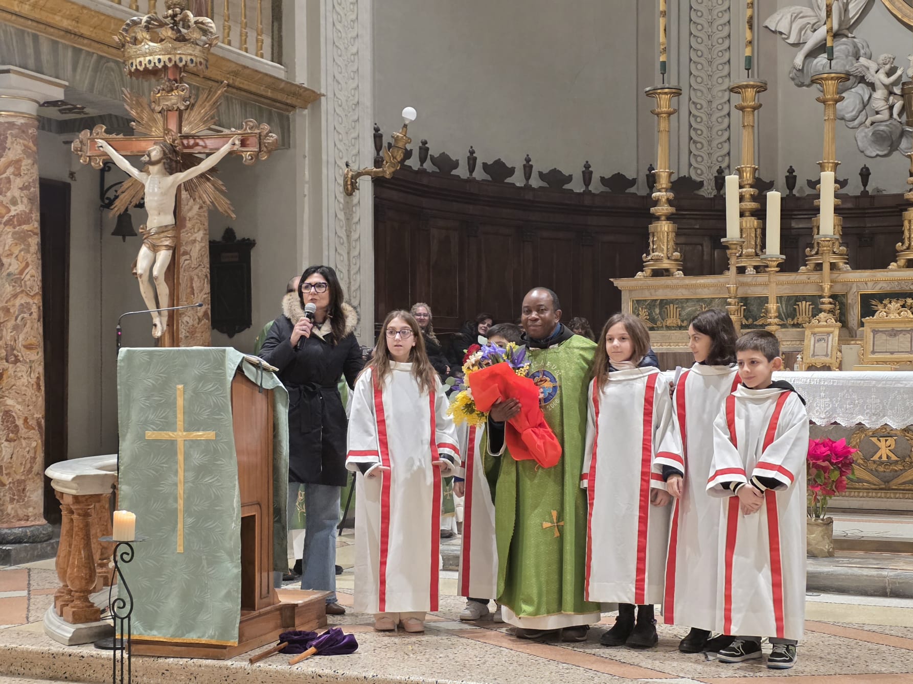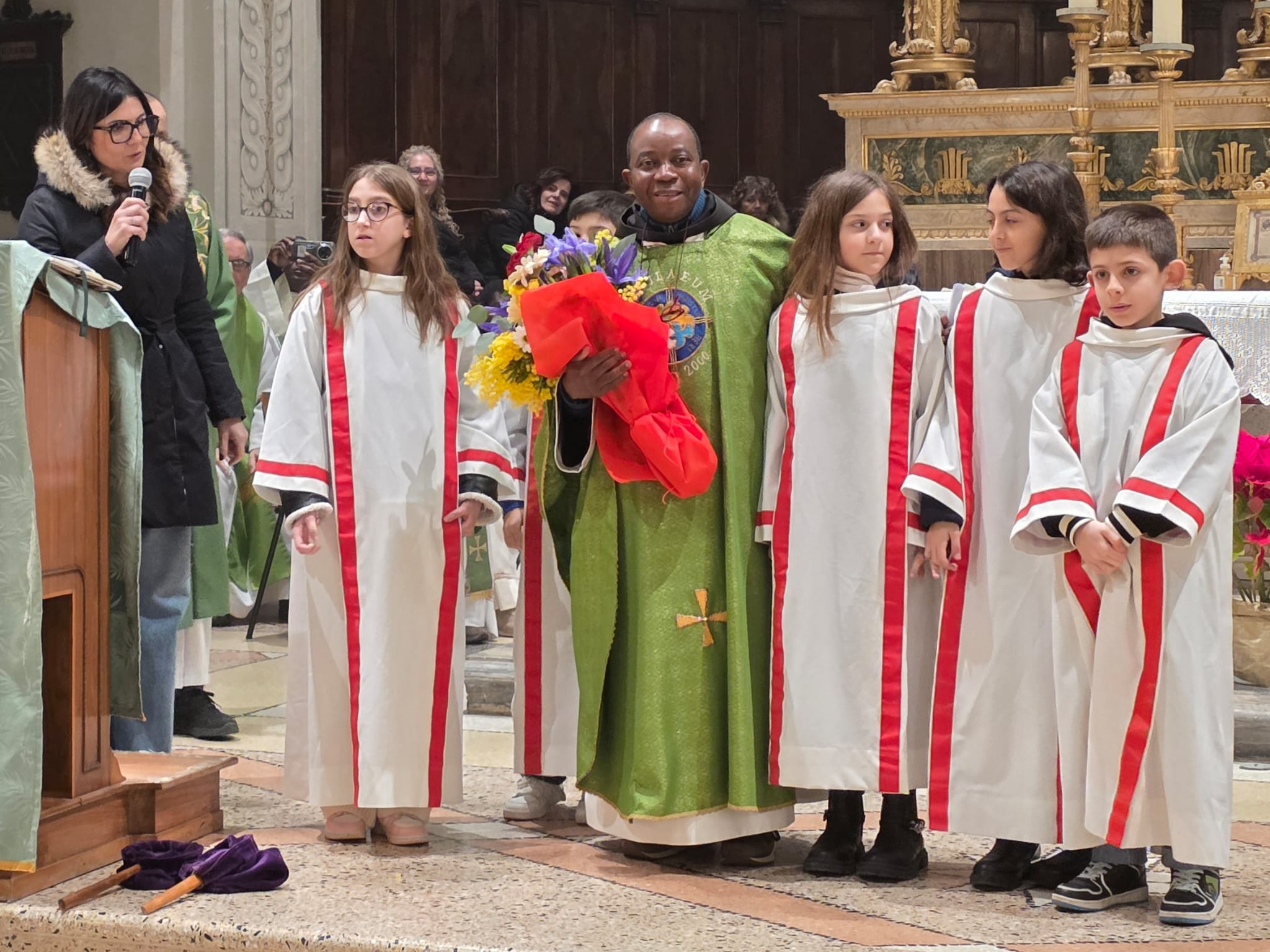 Prima della benedizione finale, Daniela Neroni, segretaria del Consiglio Pastorale Parrocchiale, ha portato al nuovo parroco il saluto dell’intera comunità: “Padre François, con fiducia e speranza ti apriamo le porte della nostra parrocchia, delle nostre famiglie, delle nostre storie e ti affidiamo la vita della nostra comunità, la fede dei più piccoli, il cammino dei giovani, le attese degli adulti e la fragilità degli anziani e di chi vive momenti difficili. Sappiamo che iniziare un nuovo Ministero non è mai semplice: ci sono da conoscere, realtà da comprendere, ritmi da imparare. Ma ti assicuriamo fin da subito che non sarai mai solo. Desideriamo collaborare con te con spirito di collaborazione e con cuore aperto, affinché la parrocchia sia la casa di tutti e la nostra sia una comunità viva, accogliente e missionaria“.