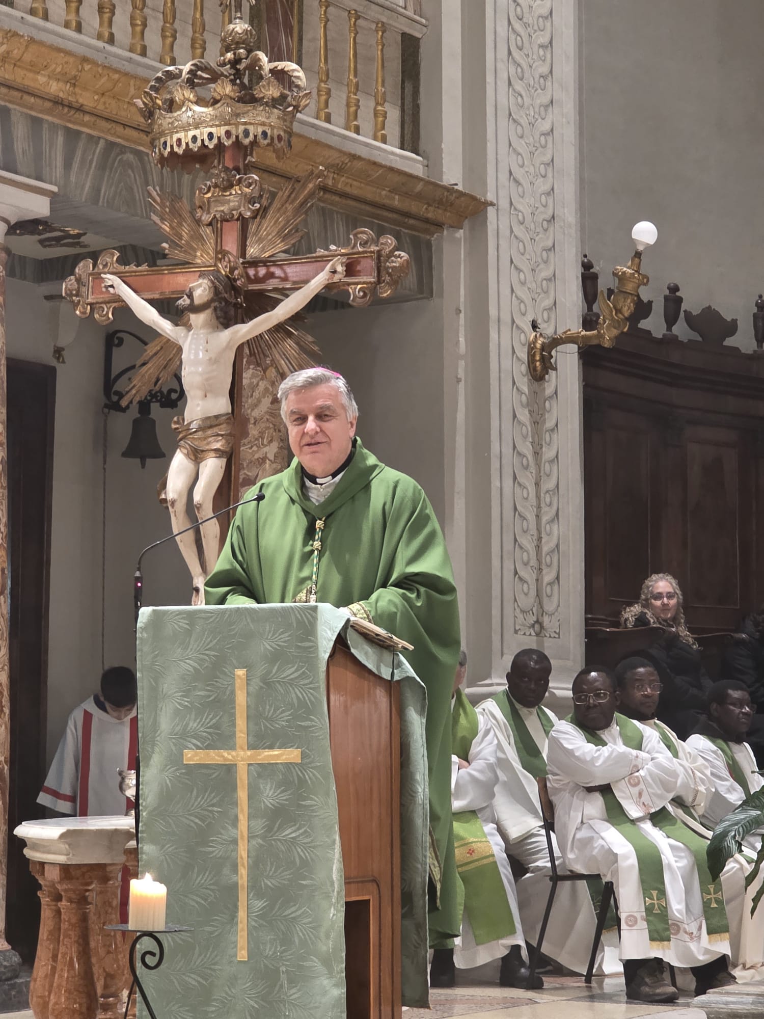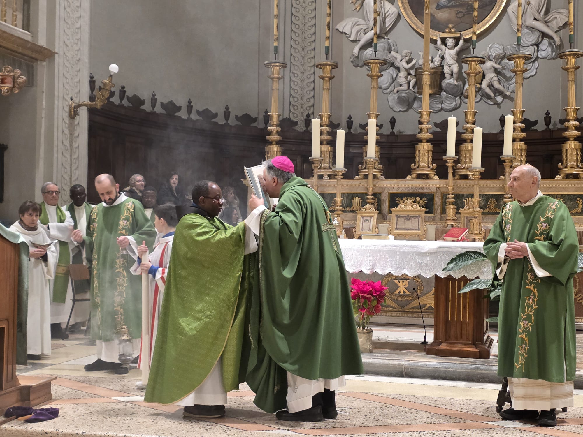 Il vescovo Gianpiero ha poi spiegato dettagliatamente come nel rito d’ingresso quello che viene detto e fatto rende molto chiaro questo dono: “A padre François viene detto: ‘Abbi cura di questo piccolo popolo credente, della sua fede!‘. Per questo motivo è il parroco che proclama per la prima volta il Vangelo. E nella benedizione che ieri sera padre Francois mi ha chiesto, abbiamo invocato Dio affinché il vostro nuovo parroco possa sempre proclamare con gioia il Vangelo del Signore, non solo stasera ma sempre, e che poi questa Parola possa essere spiegata, illustrata, aperta a tutti, in modo da potercene nutrire continuamente.