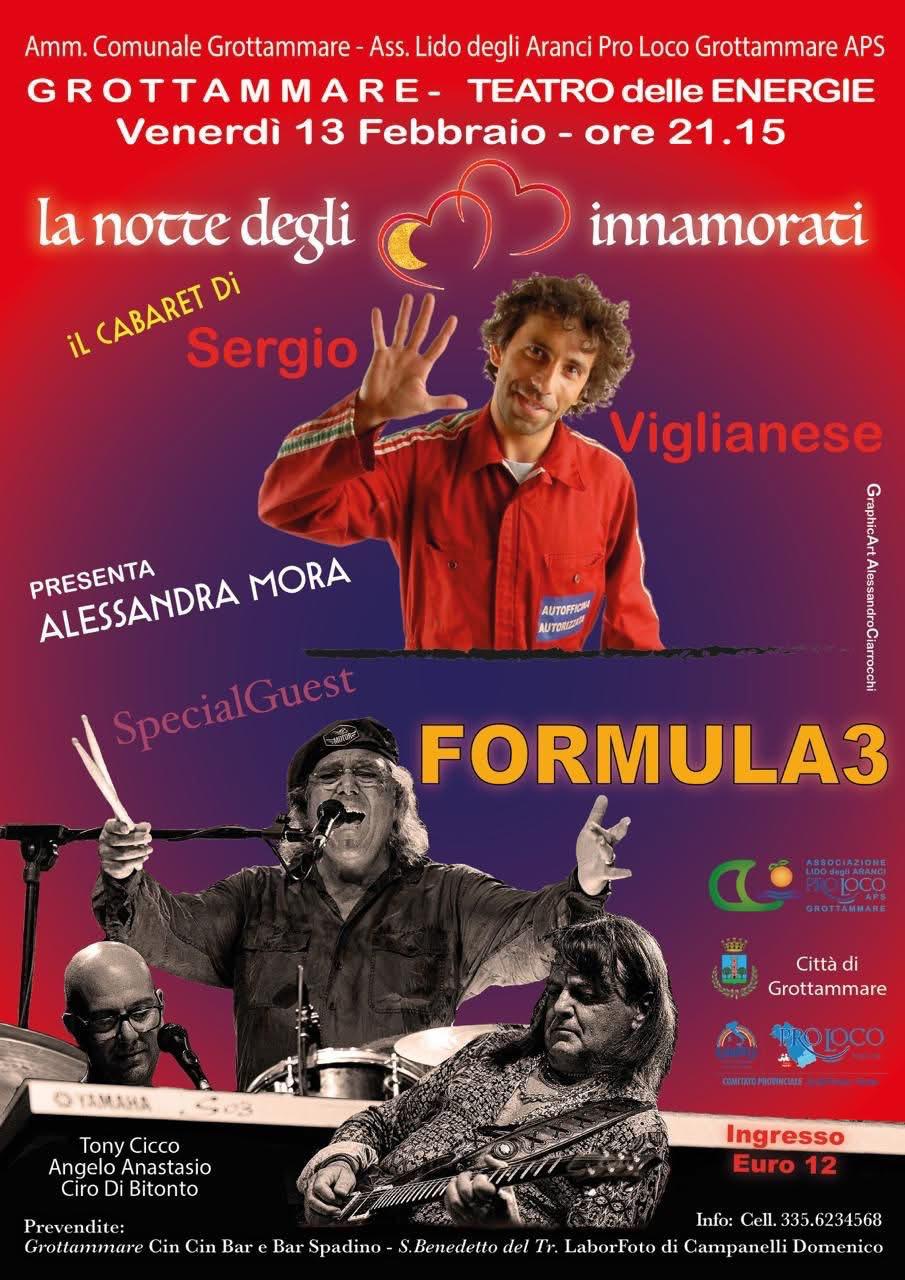 GROTTAMMARE – “Tutti siamo figli di Battisti”, con questo slogan Tony Cicco e la “Formula 3” saranno ospiti d’onore venerdì 13 febbraio alle ore 21 al Teatro delle Energie di Grottammare in una serata ricca di emozioni e sorprese. Così ritorna “La notte degli innamorati”, organizzata dalla Lido degli Aranci con il patrocinio del Comune di Grottammare, presentata da Alessandra Mora e che prevede la comicità di Sergio Viglianese il famoso meccanico di Zelig e il mitico Checco Marsella de “I Giganti” che presenterà il suo nuovo album “Questo sono io”.