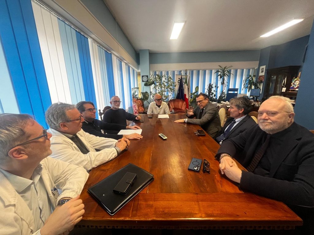 ASCOLI – Potenziare ulteriormente attraverso nuove strategie e azioni condivise la sicurezza del personale sanitario impegnato nelle unità operative maggiormente a rischio di possibili episodi di violenza, sia fisica che verbale, da parte dell’utenza. Questo il fine dell’incontro che si è svolto ieri all’ospedale ‘Mazzoni’ tra il direttore generale dell’Ast di Ascoli, Antonello Maraldo, il questore di Ascoli, Aldo Fusco, e il vicario del questore, Francesco Costantini, alla presenza per l’Azienda sanitaria anche del direttore amministrativo, Pierluigi Gigliucci, del direttore medico del presidio unico ospedaliero Giancarlo Viviani, del direttore dell’unità operativa complessa di Pronto soccorso e medicina d’urgenza, Gianfilippo Renzi, del direttore dell’unità operativa governo clinico e gestione del rischio, Remo Appignanesi, e del dirigente del servizio tecnico Giovanni Ferrari.