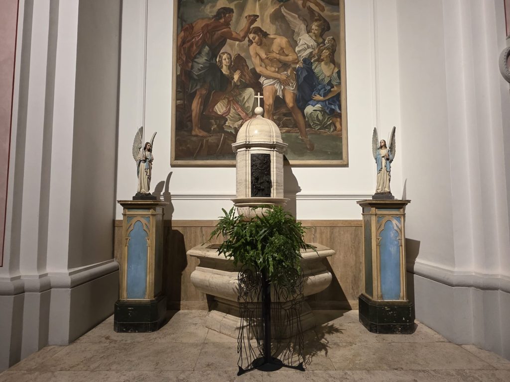 Se ci pensiamo bene, comprendiamo che il nostro cammino cristiano comincia con il Battesimo, con il quale diventiamo un solo corpo con il Signore Risorto e con tutta la Chiesa. Per ricordarci questo, il fonte battesimale è collocato all’ingresso. È sempre così dappertutto. Anzi, addirittura, in alcune cattedrali, è fuori dalla chiesa. Questo per sottolineare che, con il Battesimo, il Signore Risorto ci prende con sé, uno per uno, e non siamo più singoli, ma diventiamo il corpo di Cristo nel mondo.